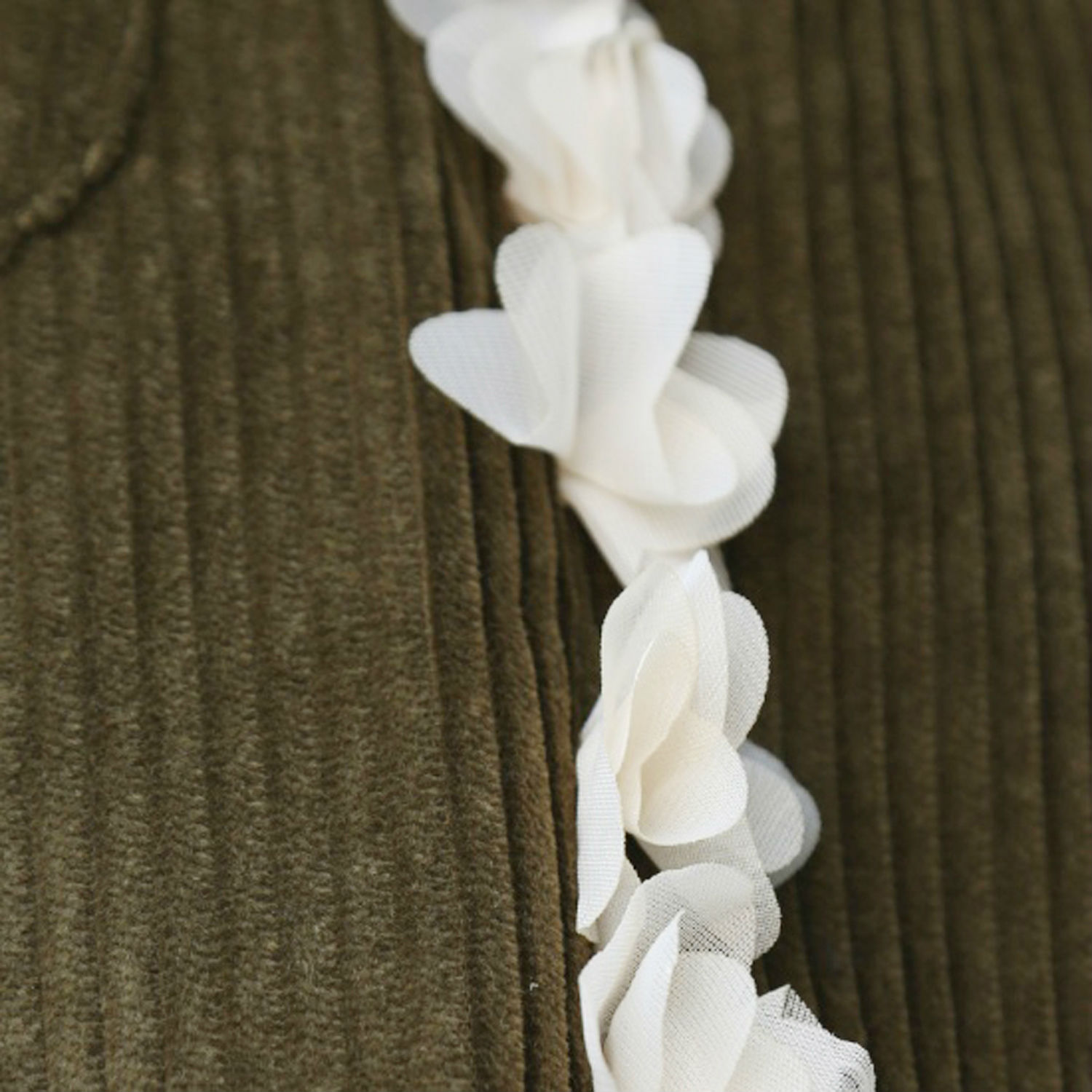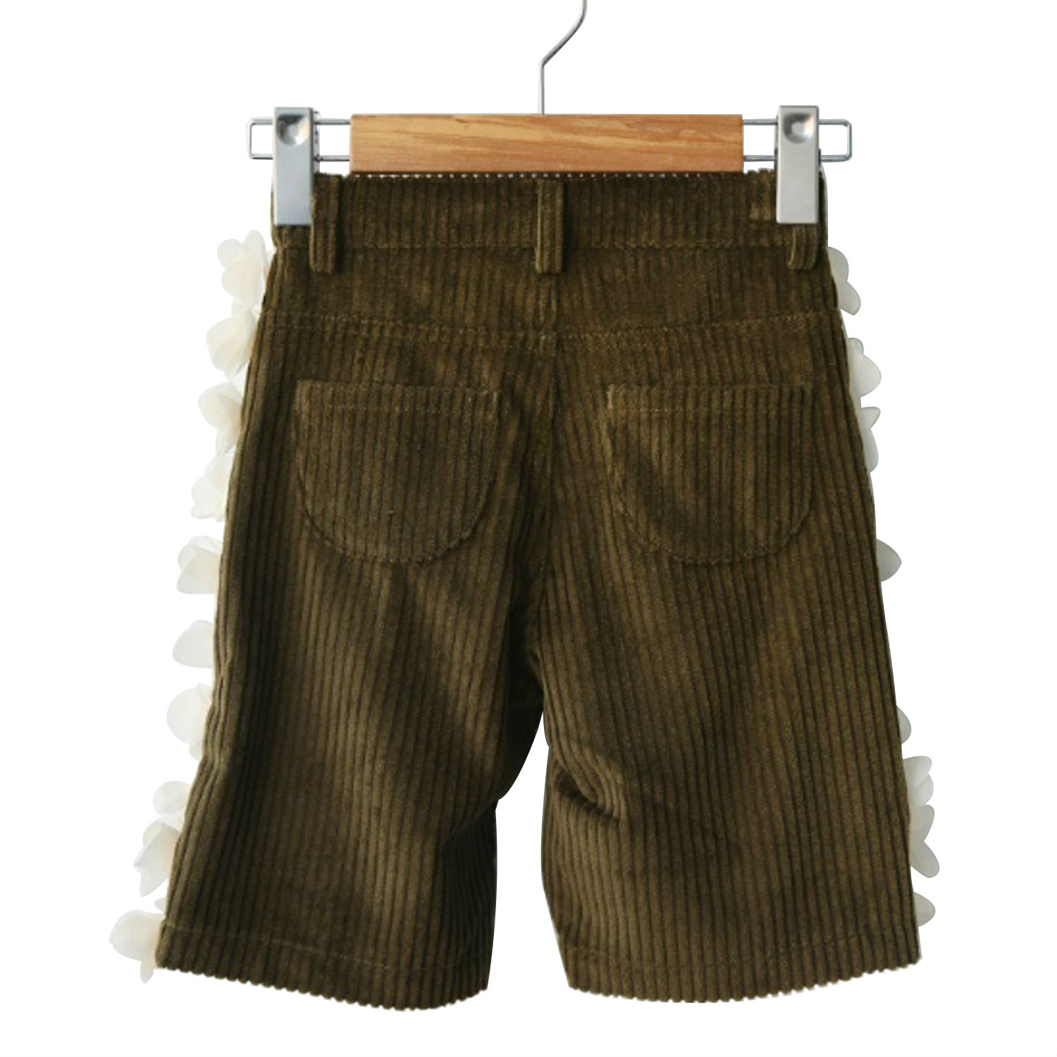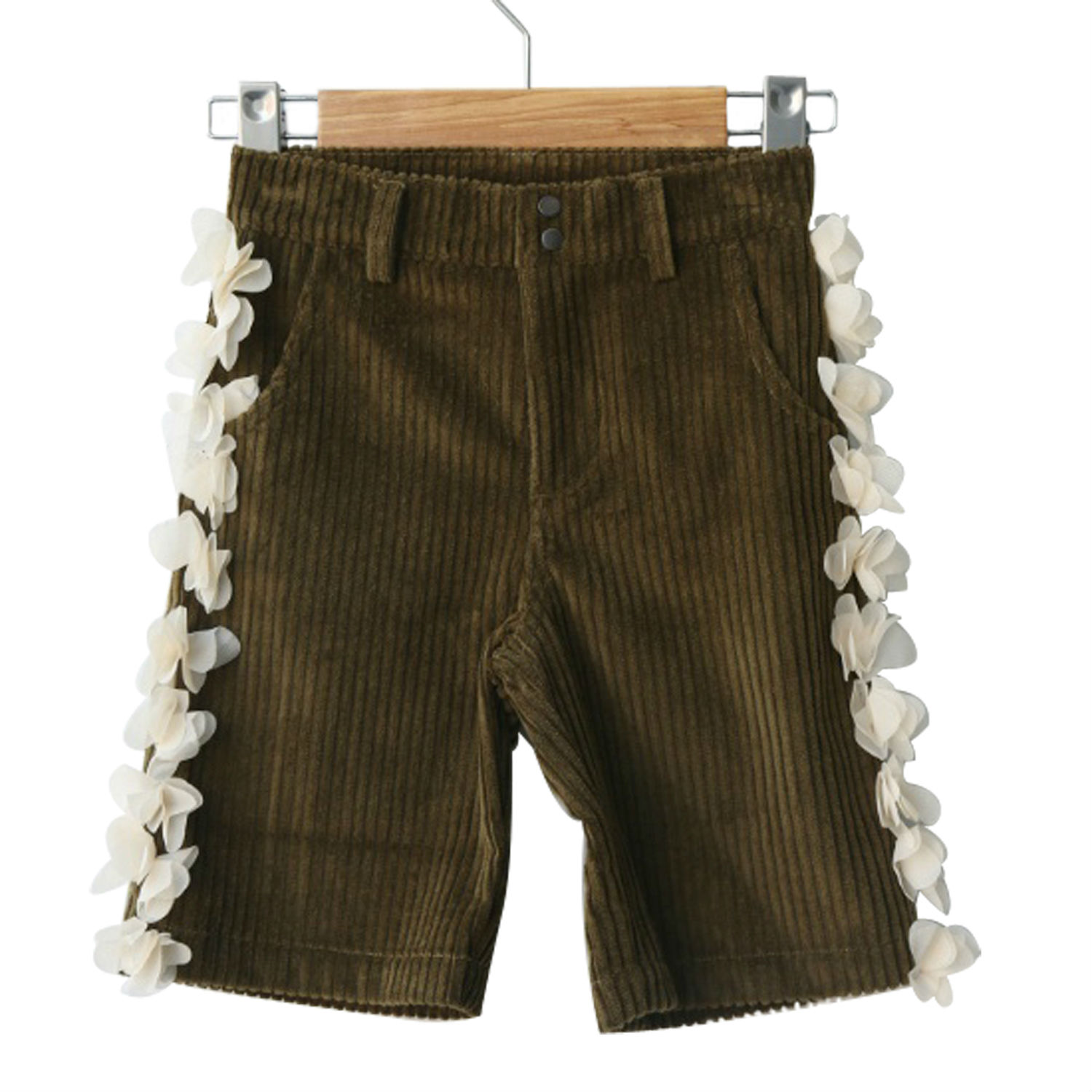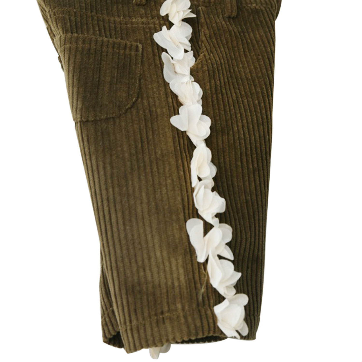 Corduroy pant with floral lace on both sides. It's easy to mix and match for different styles.