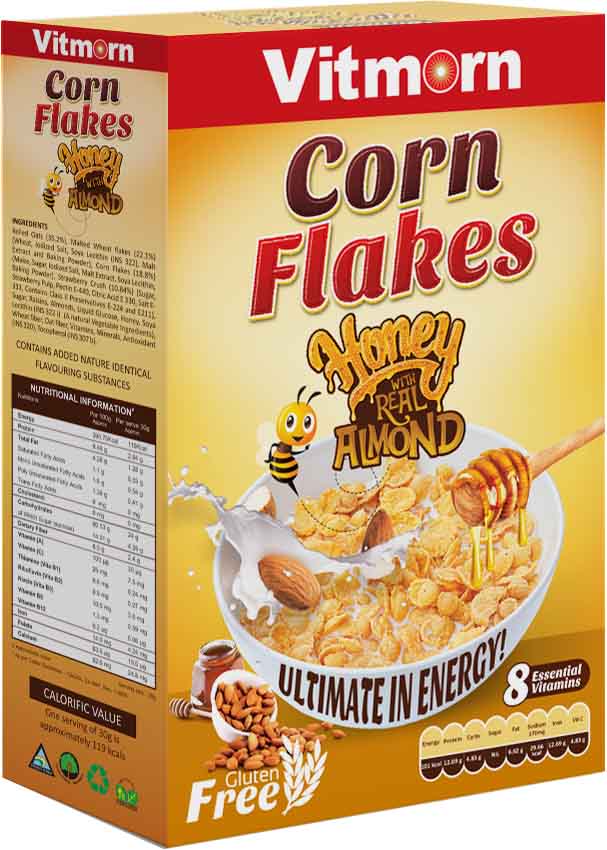 • Vitmorn Corn Flakes Honey with Almond is rich sources of iron and contain Omega 3