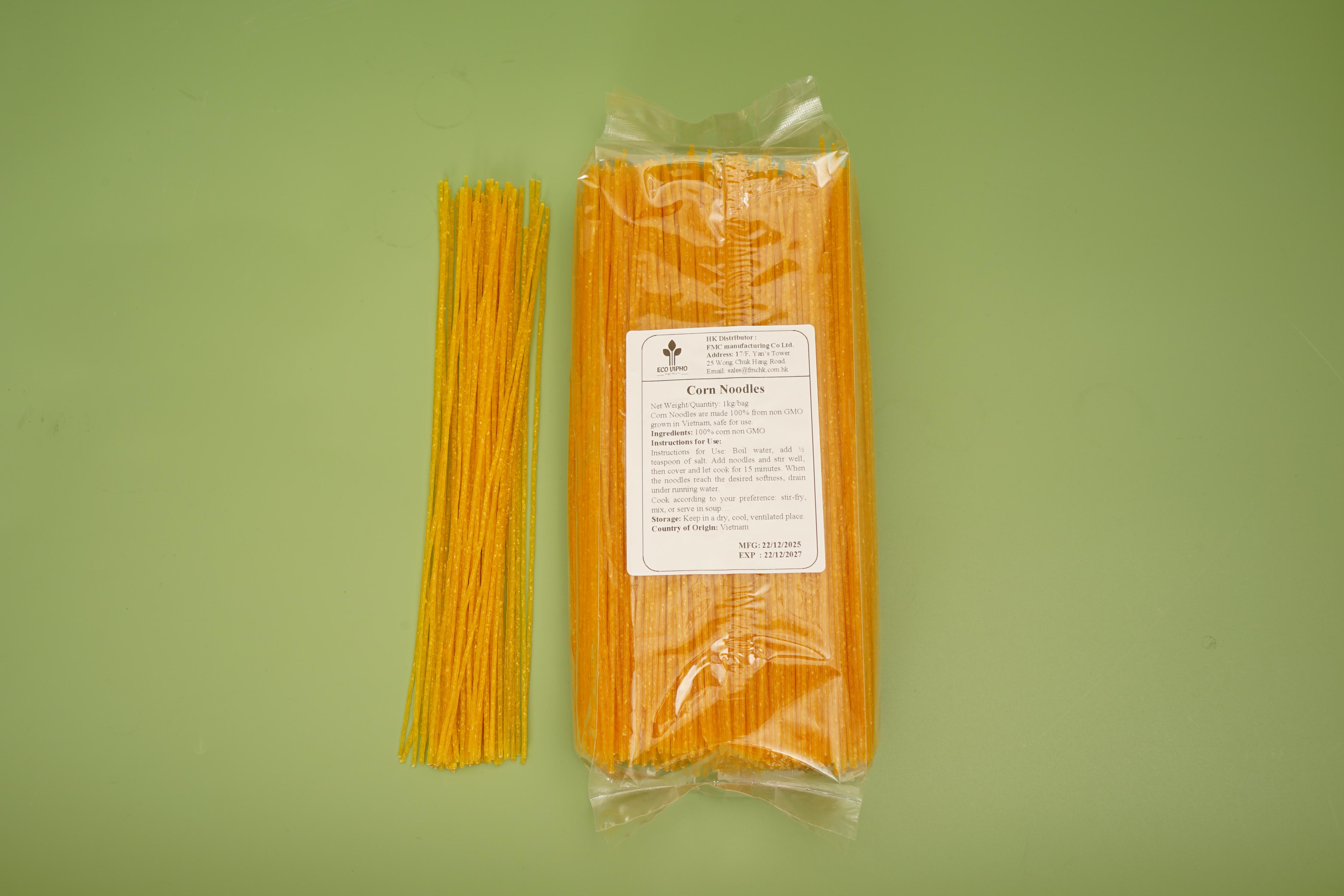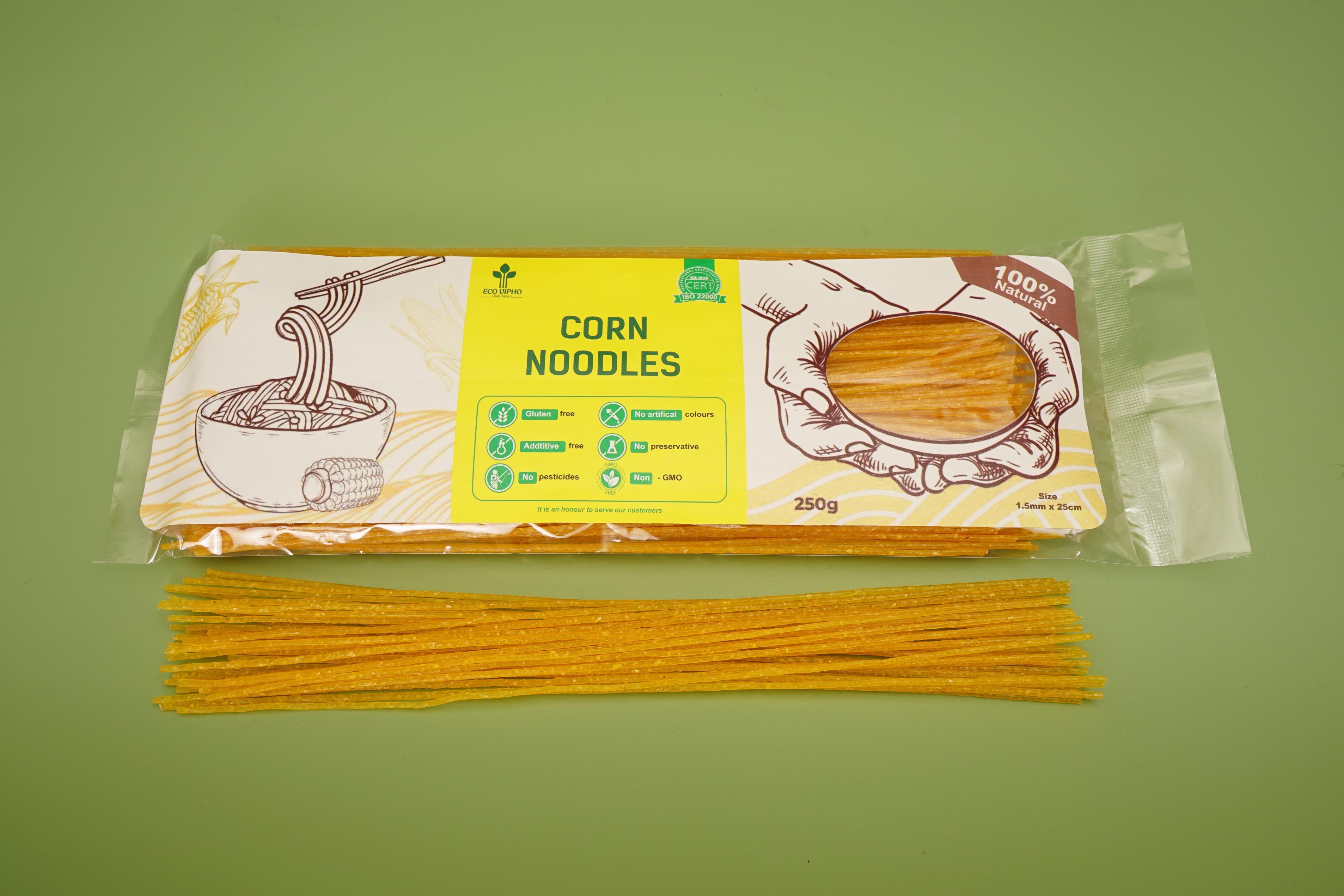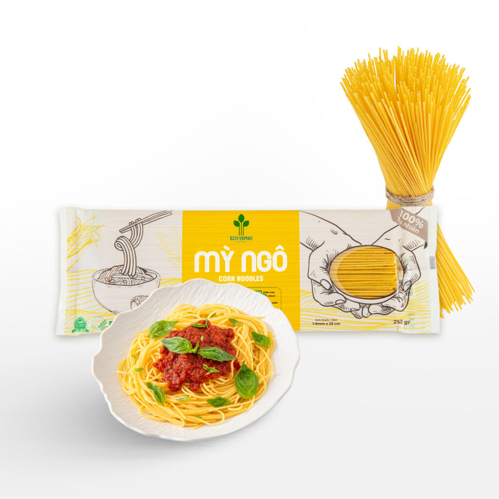 Eco VIPHO Corn Noodles are made from 100% corn grown in Vietnam, non-GMO, rich in fiber and vitamins, with a special sweet aroma from native corn varieties.