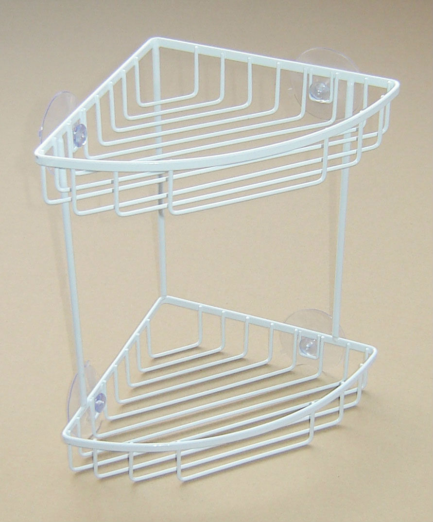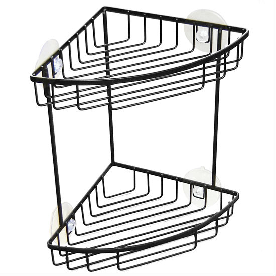 Expand storage areas in your bathroom and kitchen with this corner basket. It features a two-tier structure with 2 wired baskets in a fan shape. Mounted with 4 suction cups, this corner basket can be easily installed onto walls paved with glass or non-porous tiles with just a push.