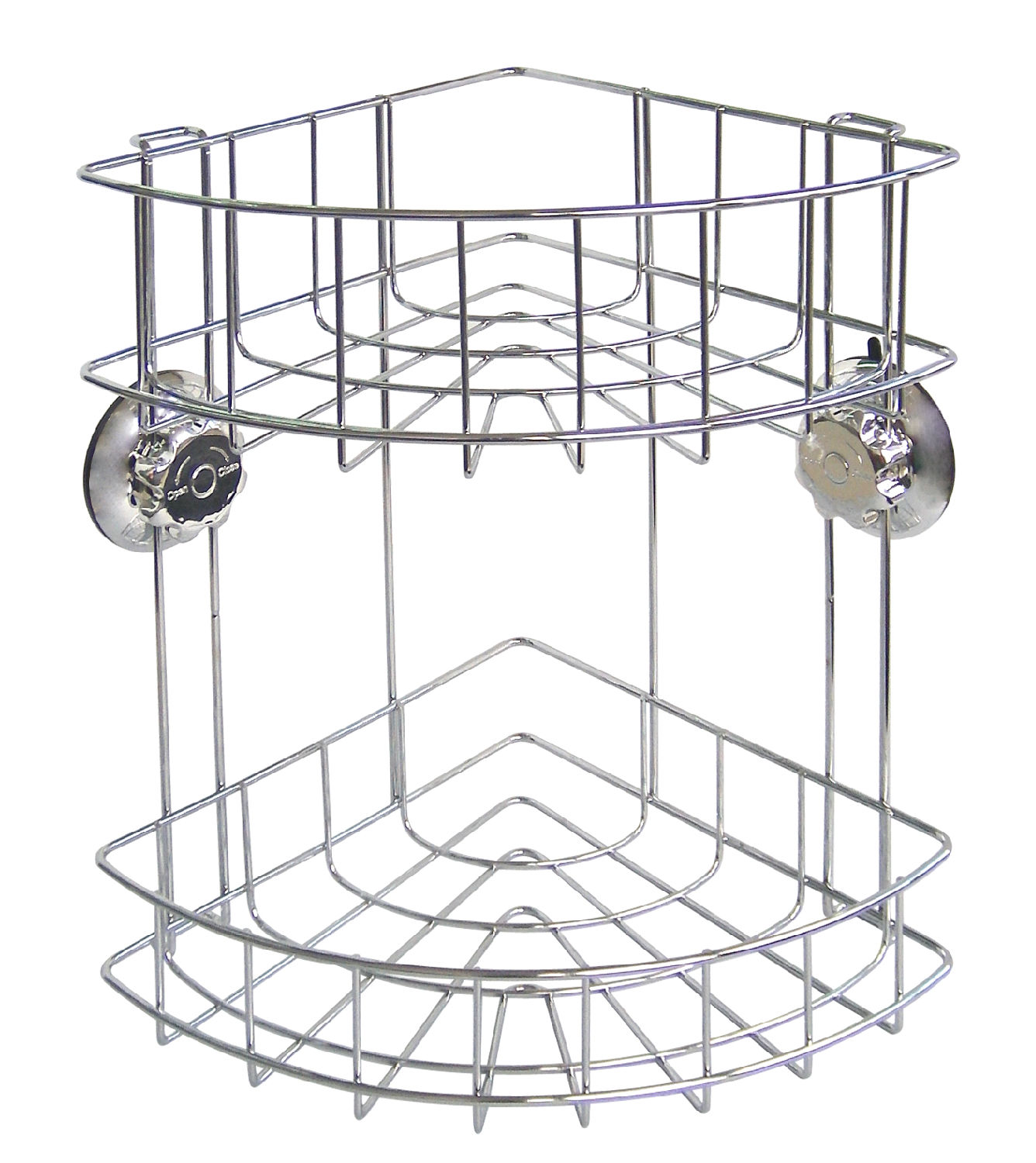 This 2-tier corner basket comes with chrome finish and offer good rust resistance. It is mounted on strong suction cups with loading capacity of 5kg each. The corner basket can provide extra storage for kitchen and bathroom corners.