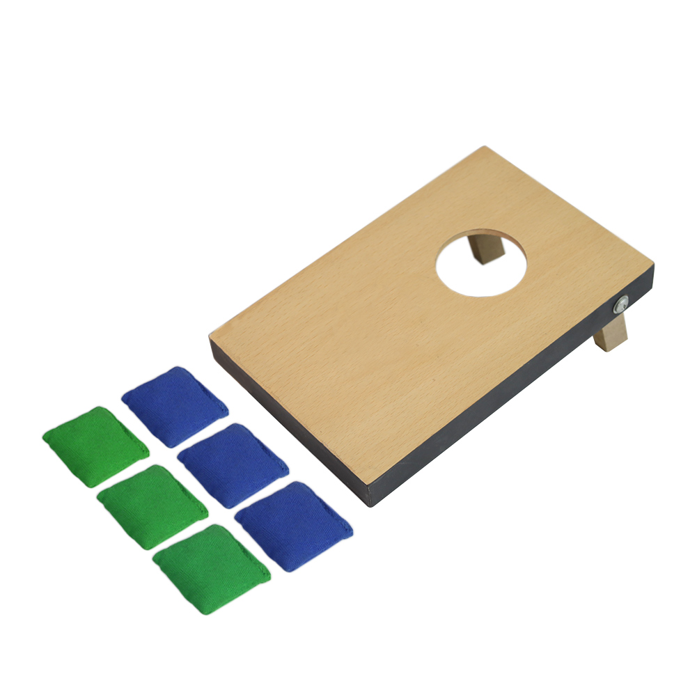 pick up a beanbag, aim at the hole, and let it fly. "WOW""YEAH"