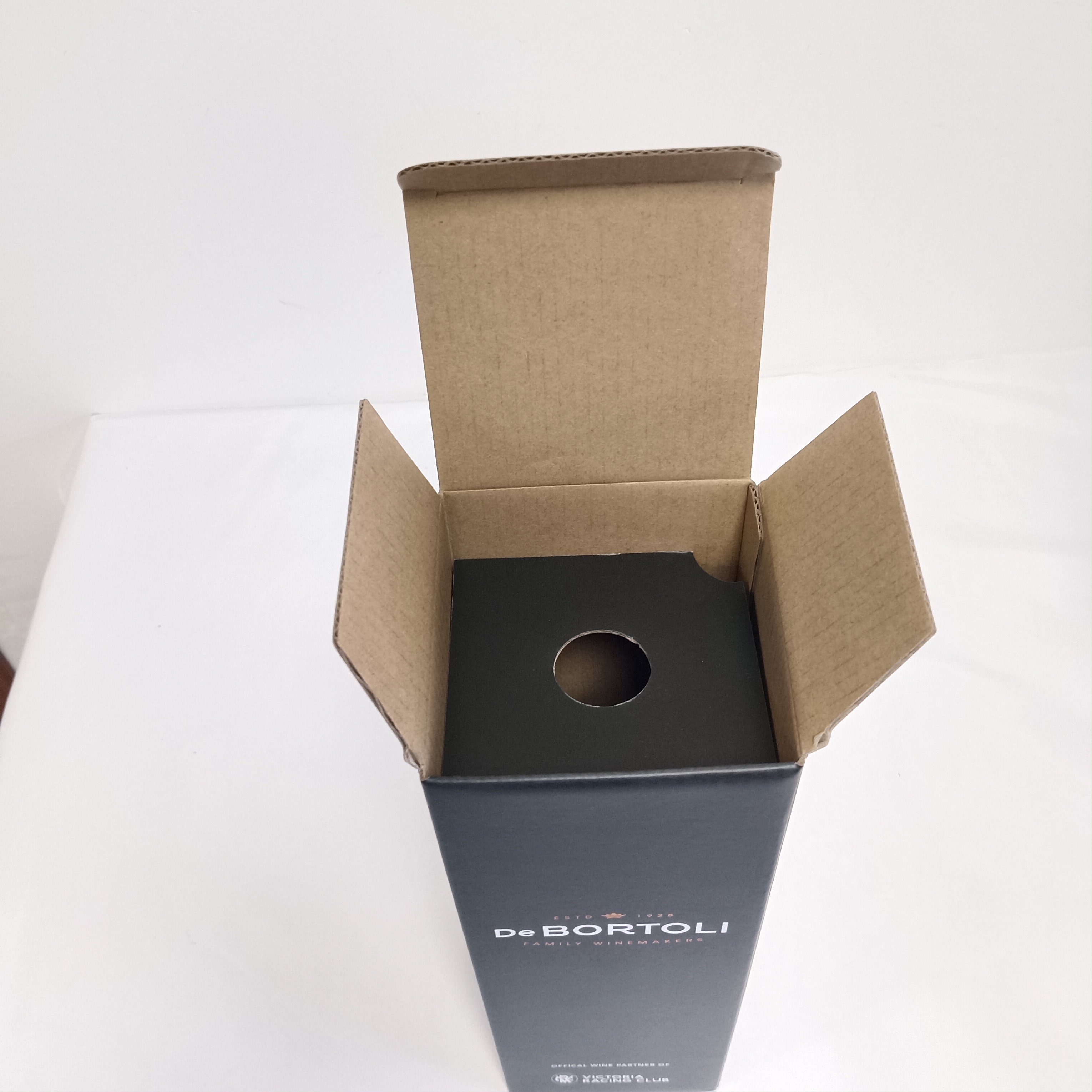 Crafted with sturdy corrugated material, this branded wine box not only ensures exceptional protection for wine bottles during transit but also features a sleek, premium design that elevates brand prestige; its robust structure and tailored dimensions offer secure storage and easy handling, while the clear brand branding enhances recognition, making it an ideal choice for luxury wine gifting or retail, seamlessly blending functionality, durability, and high-end aesthetic appeal.