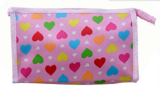 This orange cosmetic bag features a diamond lattice pattern. The finely manufactured bag boasts a long service life. The well-designed bag is suitable for promotional use.