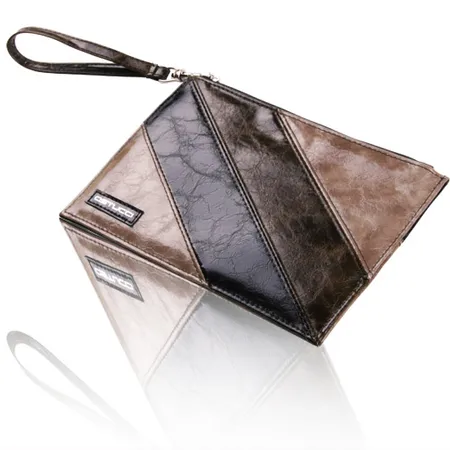 Crafted using different materials in matching colors, this cosmetic bag comes in a classy patchwork design. It has a rectangular compartment with zipper closure and has a wrist strap on the zip pull for using as a handle. This cosmetic bag is excellent for carrying makeup or other small items and is perfect for travelling use.