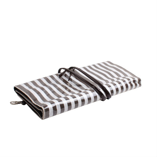 Carry cosmetics, toiletry and other essentials with this soft cosmetic bag. It is adorned with stripes has a clear PVC cover on the surface. This cosmetic bag has a foldable structure for easy carrying and transportation and is excellent for travelling use.