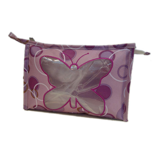 Featuring a butterfly image, this cosmetic bag comes in a practical rectangular shape to maximize the carrying capacity. It is made of quality PVC to offer long lasting and repeated use. It is easy and convenient for ladies to carry on the go.