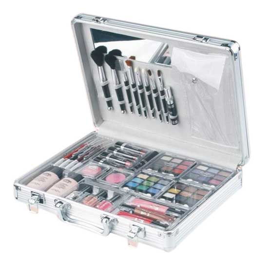 Photographed is a cosmetic box with detailed compartments and slots to cater for your brushes and cosmetic accessories. The cosmetic box is well made with quality and lightweight materials for improved durability. The box comes with a handle for easy carrying upon traveling.