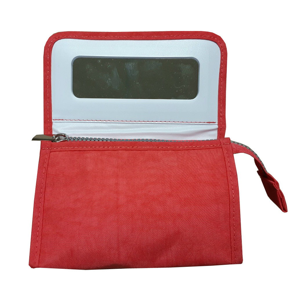 Take your makeup everywhere in style with this classy and functional cosmetic case. It has a zippered rectangular compartment with a flap for closure and has a mirror at the back of the flap. This cosmetic case is embellished with a logo on the exterior and can protect the stored items well.