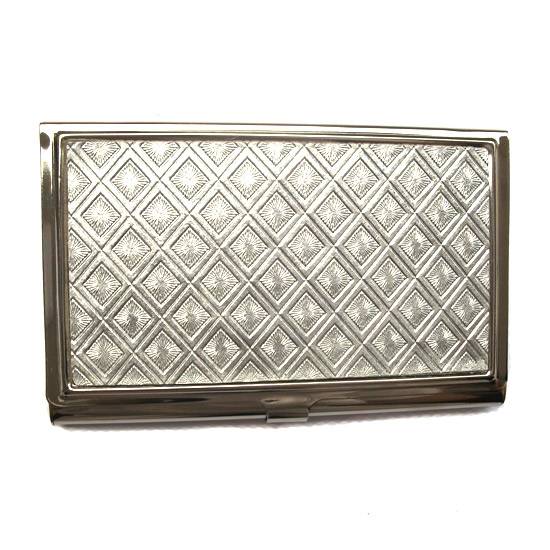 The featured item shown on the picture is a portable cosmetic mirror with an elegant and stylish design. Rectangle in shape, the mirror a silver cover with delicate engravings on the sleek and shimmeing frame.