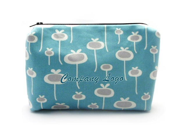 • This pouch is made from a retro flower print in cream and gray on a pale aqua home-dec weight fabric.