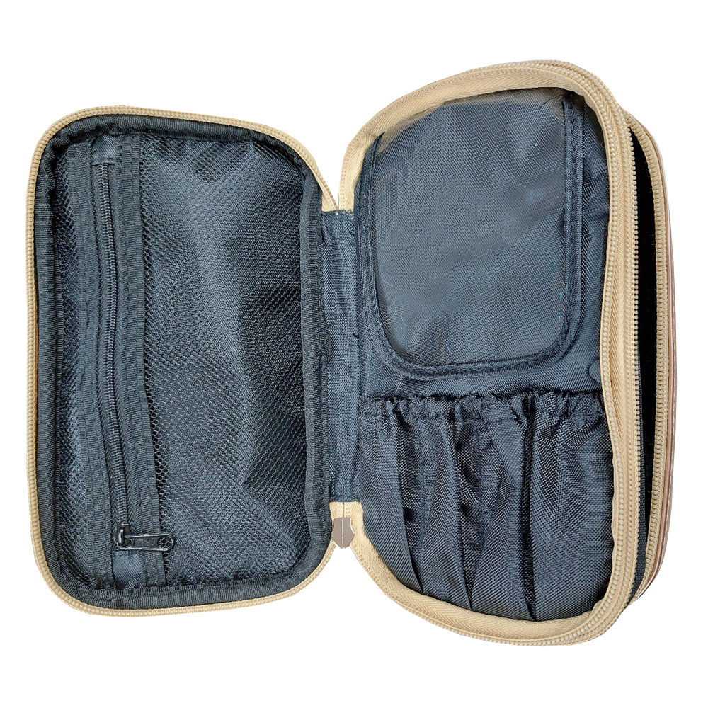 The bag made by PU and inside in polyetser, nylon zipper with metal pullers