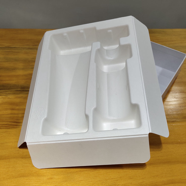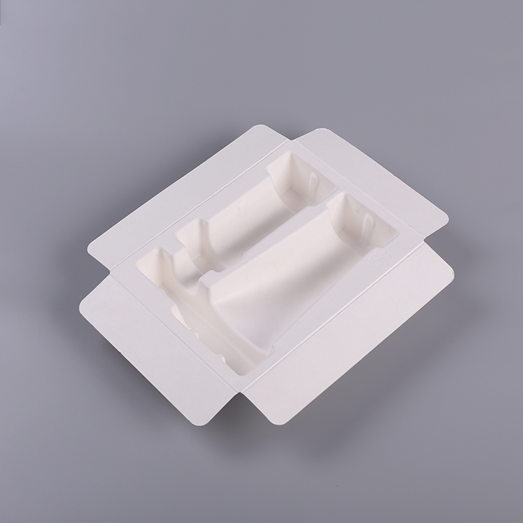 Custom biodegradable bagasse fiber molded cosmetic packaging tray