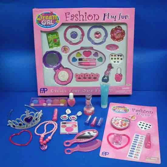 The lovely cosmetics playset features assorted makeup items including eye shadow, a lipstick, a nail polish, a bracelet and a necklace. You can create yourself a unique and fashionable look with the cosmetics and accessories. Young girls will love to play with this cosmetics playset for hours.