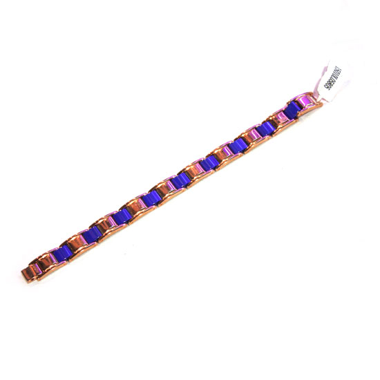 This stylish ladies' bracelet is crafted of golden-toned steel and purple stones. A polished finish adds a touch of elegance to this jewelry. The bracelet is secured with a safe jewelry clasp.