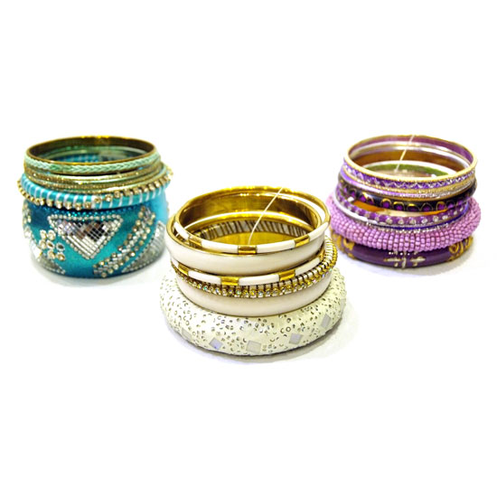 Outlined is a series of costume bracelets in three groups with the same motif. The costume bracelets are finely made of metal decorated with shimmering cubic zironia stones. Those costume bracelets are surely ideal to match your fashion wear easily.