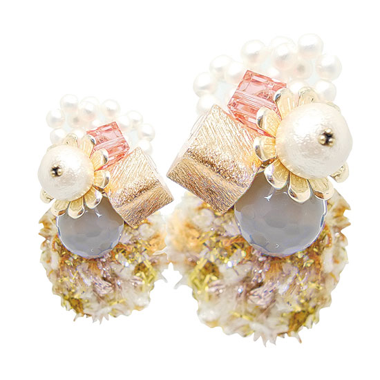 This is a pair of costume earrings that boasts a cute and lovely appearance. They are accented with different shapes of ornaments in bright colors. This pair of earrings shimmers with a high-gloss finish.