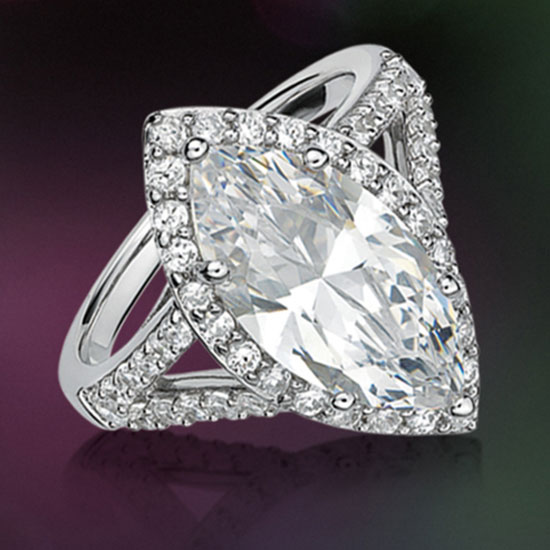 This pretty costume ring spotlights a brilliant white center stone in marquise cut. The ring is accented with shimmering tiny stones for added appeal. The polished band completes the look of this stylish ring.
