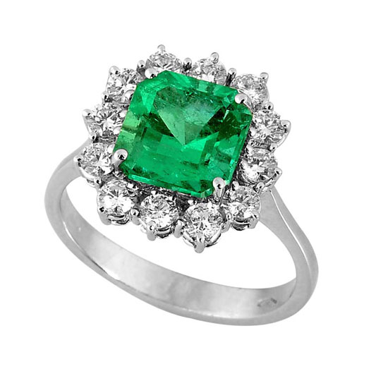 This gorgeous ring features an elegant flower design with a cushion-cut green stone in the center. The shimmering white stones greatly enhance the beauty of this ring. It comes with a silver-toned slim band in a highly polished finish.