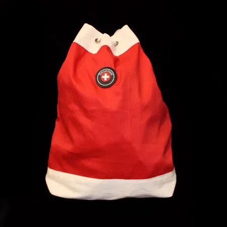 The drawstring bag captures your attention with its red finishing. The durable construction ensures lasting use. This cotton bag makes a trendy choice for everyday use.
