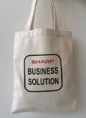 Featured here is a cotton tote bag for packaging and promotional use. It comes in a rectangular shape and is decorated with brand names on the surface. This tote bag offers ample space for storage and has a pair of handles on top for convenient carrying.
