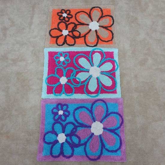 This alluring bathmat features three flower patterns in brilliant colors. It is constructed from cotton for maximum coziness. There are various designs available for your selection.