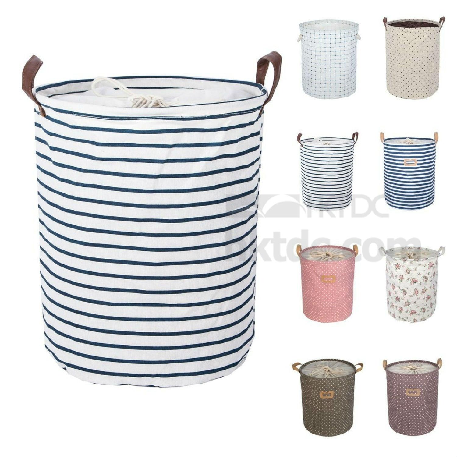 Cotton Drawstring Waterproof Collapsible Round Laundry Basket