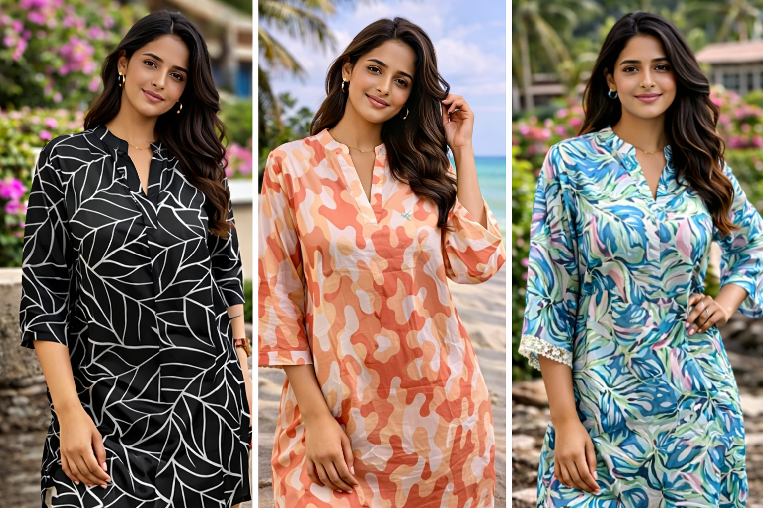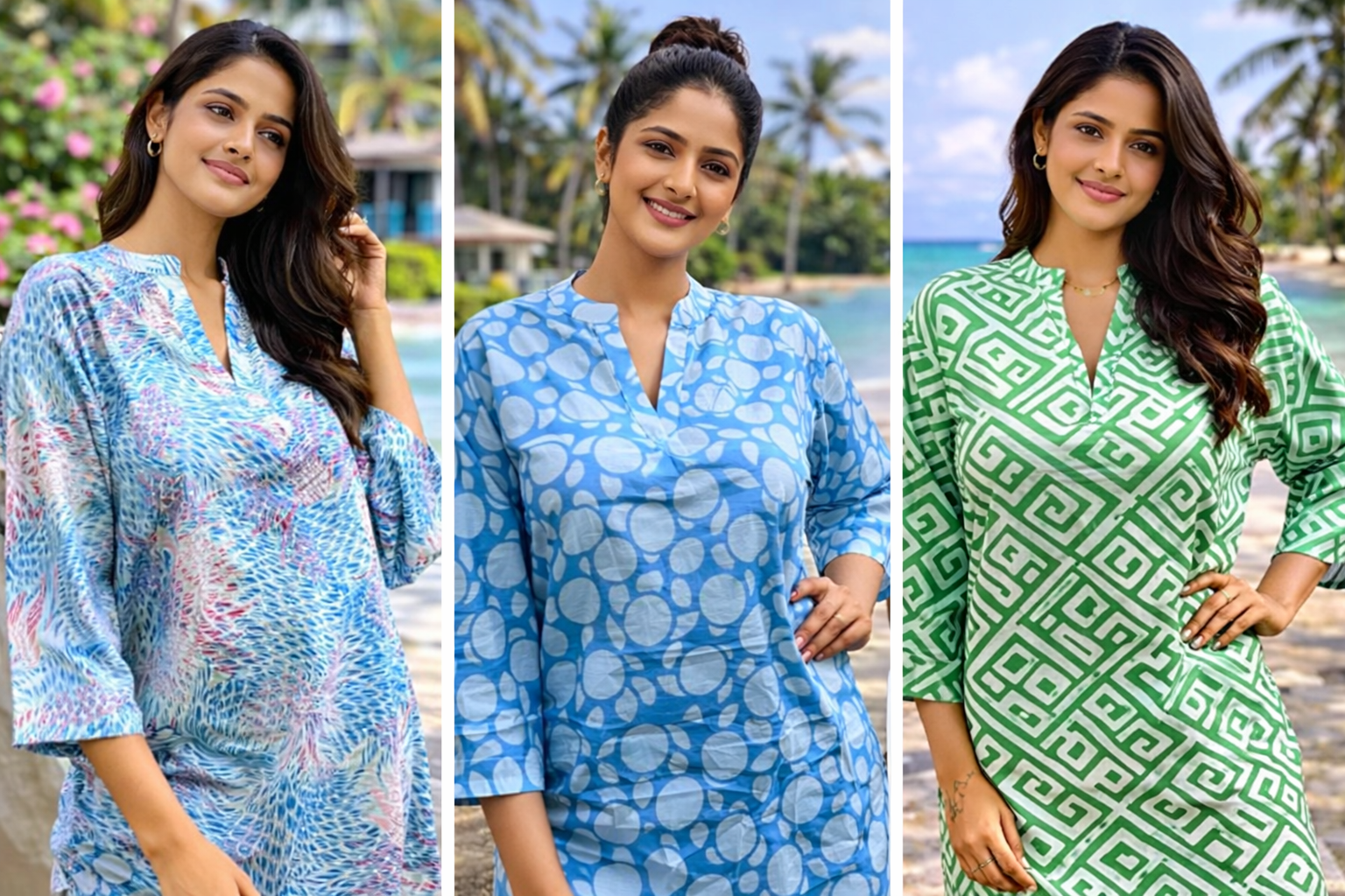 Elegant printed tunic developed in high-quality cotton/viscose base.