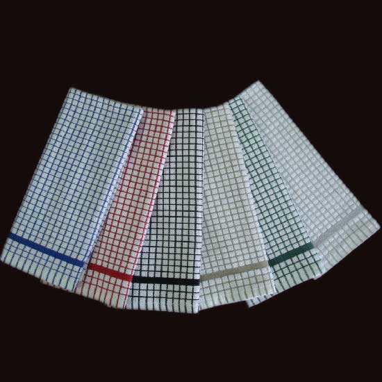 Highlighted here is a cotton towel for kitchen use. It is accented with grid patterns for a sophisticated touch. This luxurious cotton kitchen towel is easy to use and dry.
