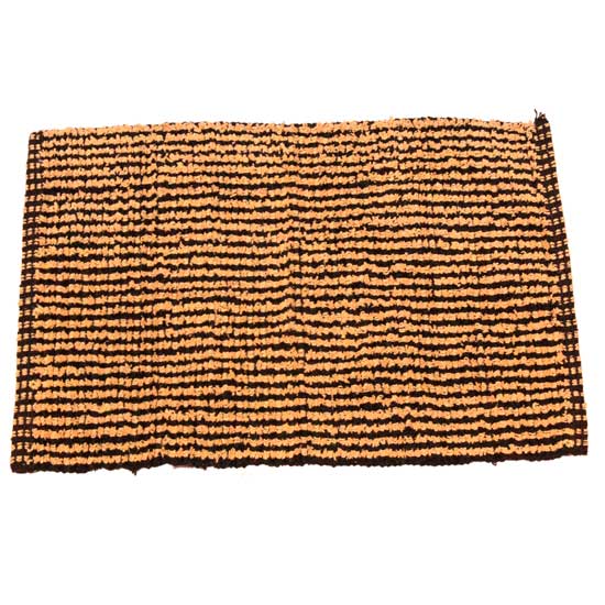 The picture features a rectangular shaped mat in a brown finish. Handmade of cotton, it features a super soft and absorbent surface. The durable and stylish mat coordinates with any bathroom, bedroom or kitchen decoration.