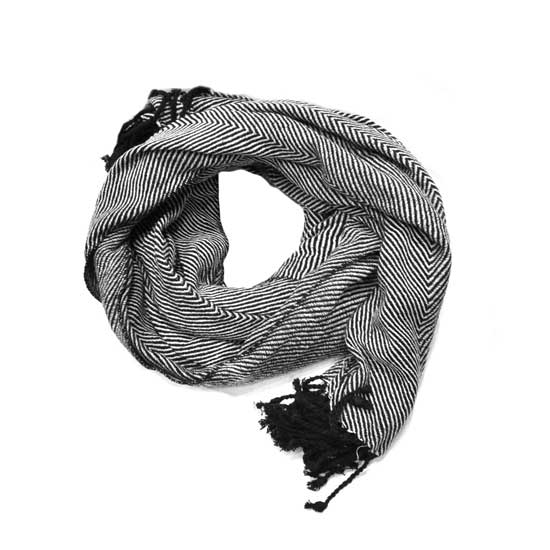This fashionable muffler features a black and white stripe pattern. The high-quality garment delivers great wearing comfort. The finely manufactured muffler provides you with satisfying warmth.