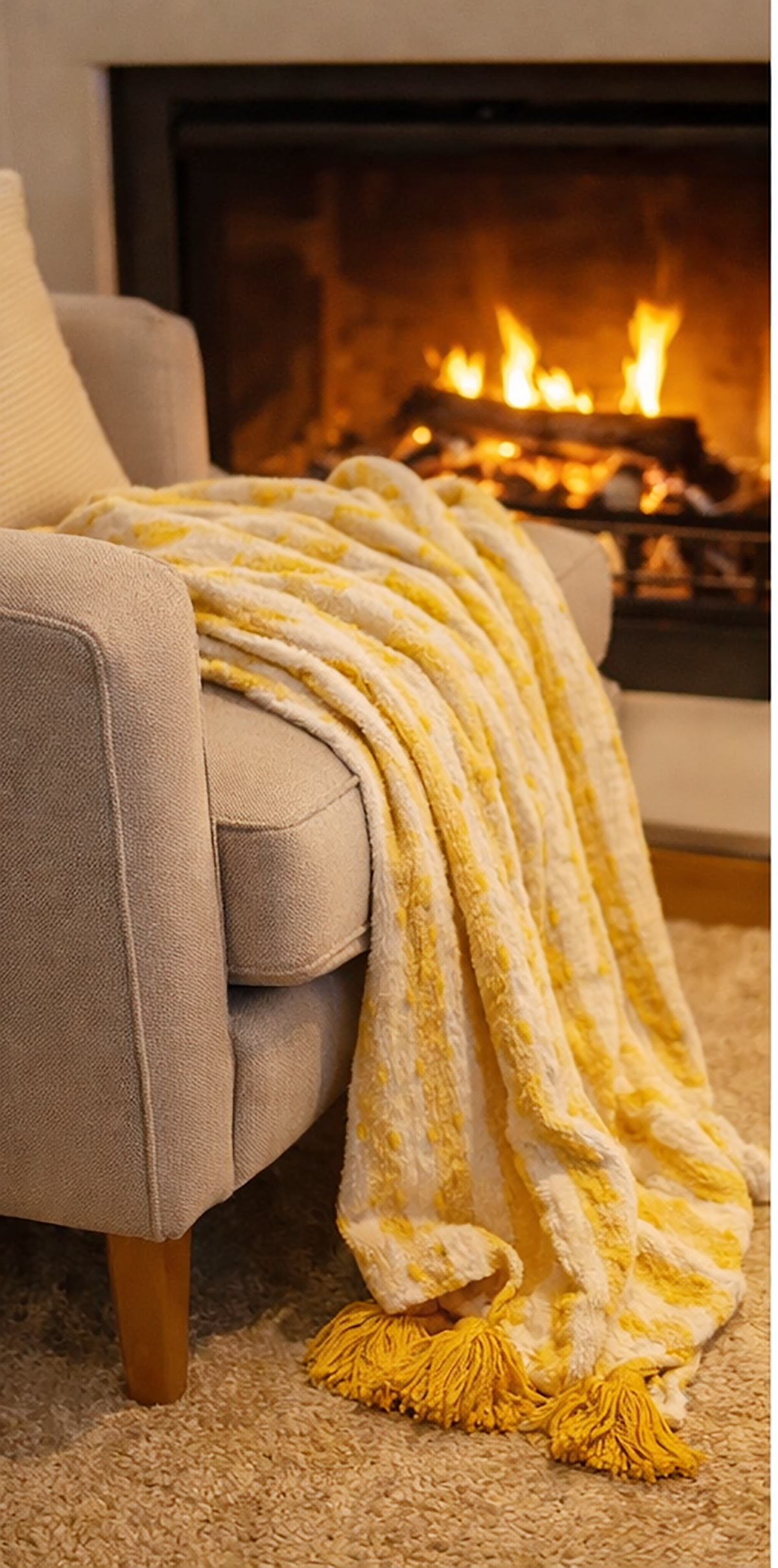 Whether draped over a sofa, folded neatly at the foot of a bed, or used as a cozy wrap, this throw blanket adds warmth, texture, and elegance to any environment. Its refined finish and timeless appeal make it a practical yet decorative accessory for modern living.