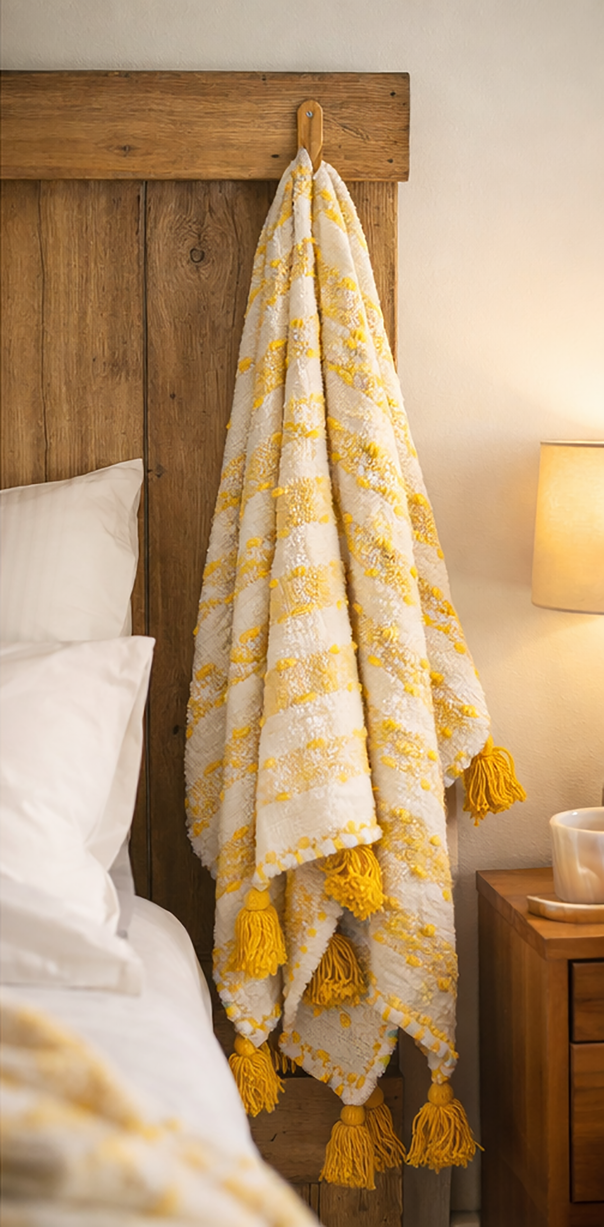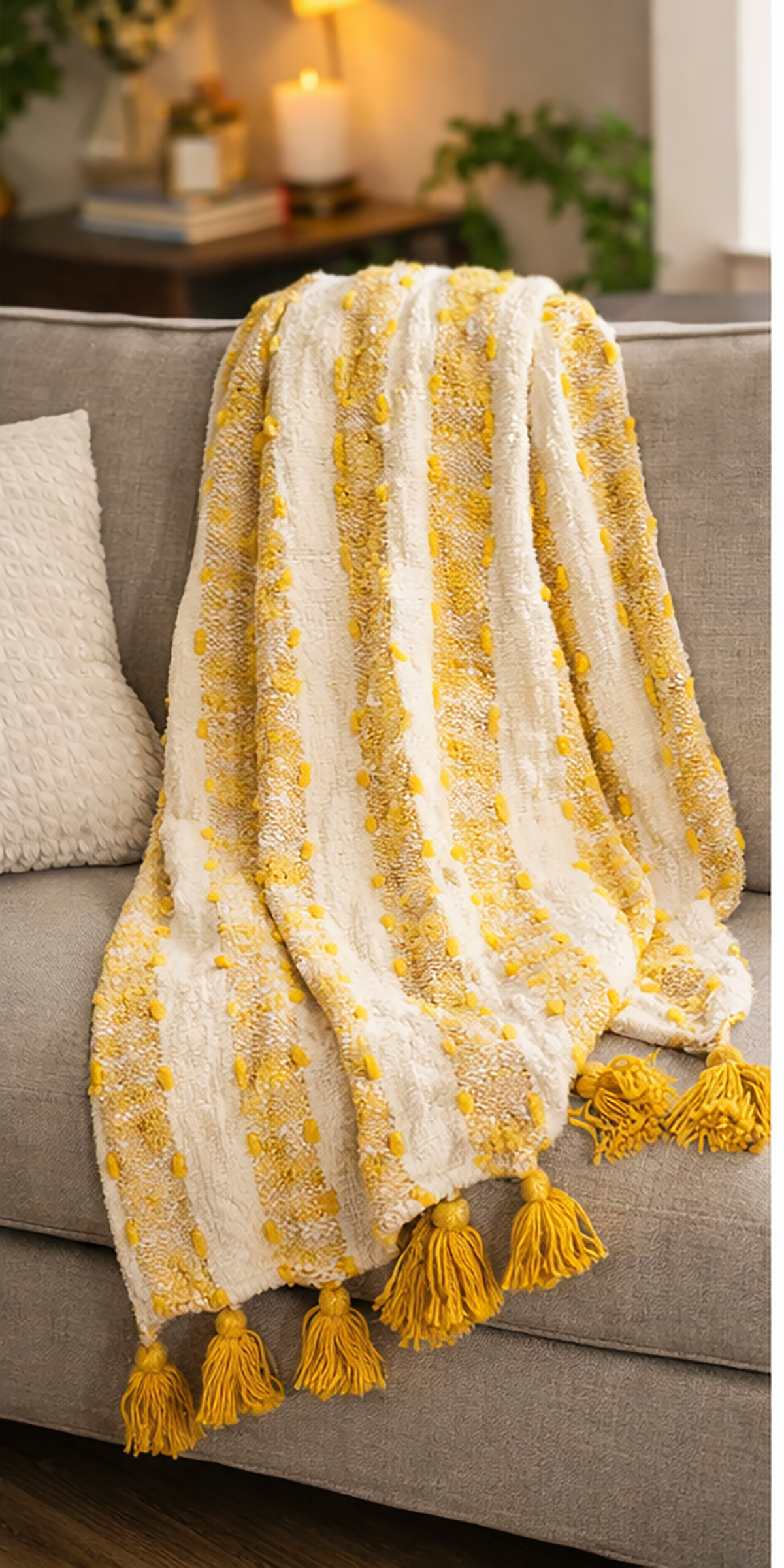 This cotton/polyester throw blanket combines comfort, practicality, and elegance, making it a versatile addition to any home. Whether for personal use or as a thoughtful gift, it delivers warmth and sophistication with the perfect balance of softness and durability.