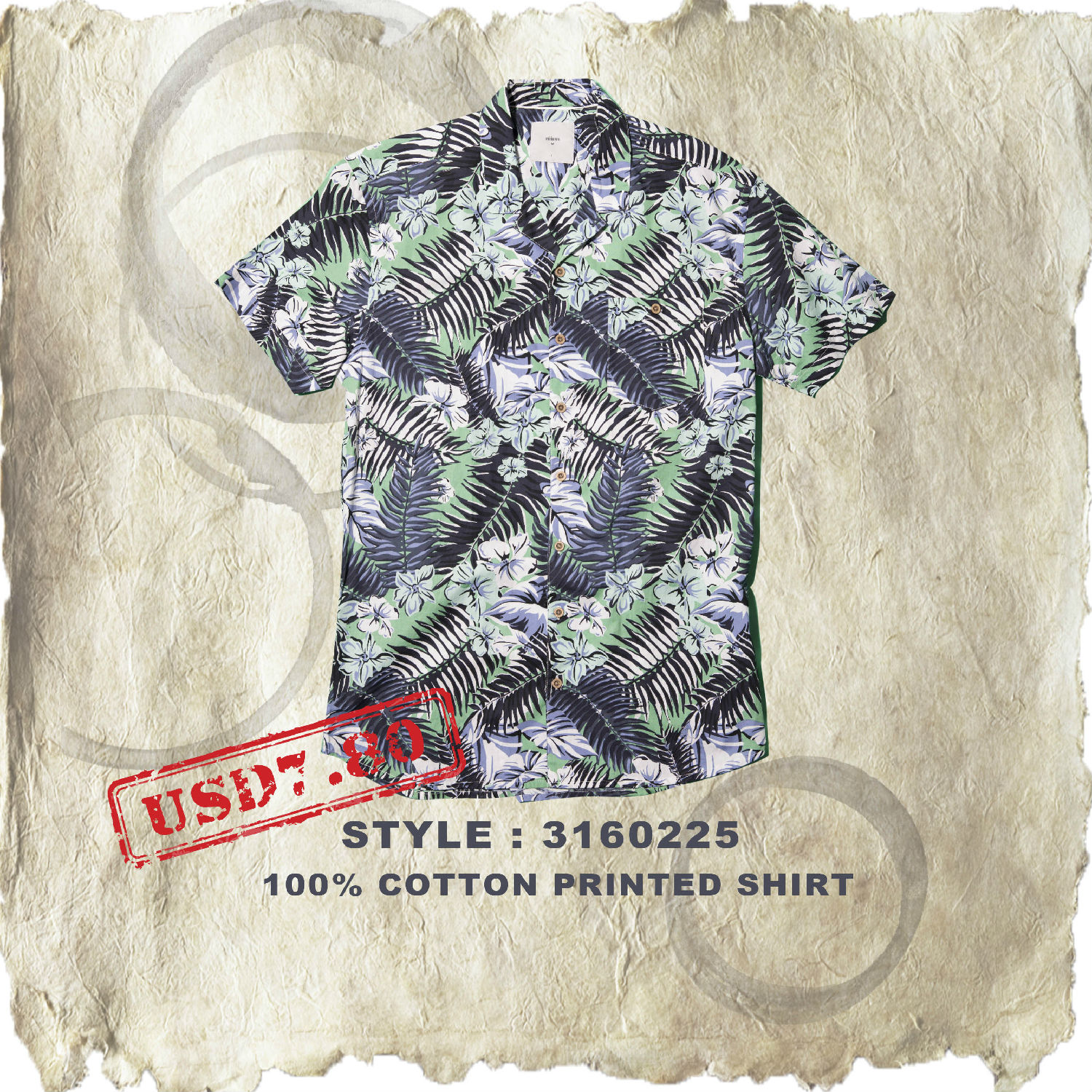 • Men 100% cotton printed shirt with garment washing and with good hand feel.