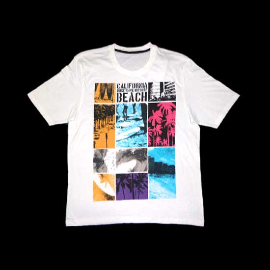 This knitted round-neck T-shirt in white features a collection of patterns with a beach theme. It is made of 100% combed cotton for coziness. This short-sleeved T-shirt completes your holiday looks in an instant.