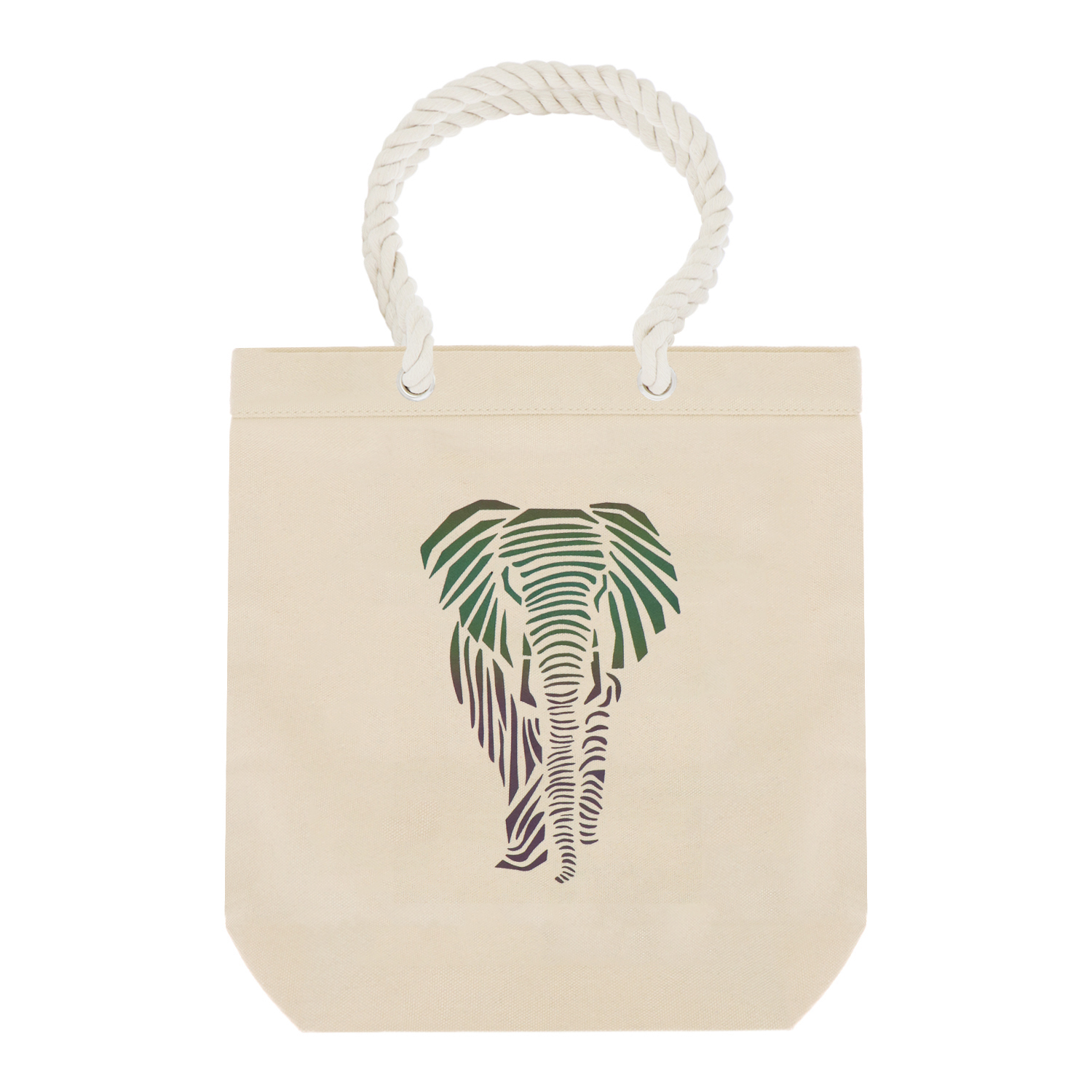 Highlighted here is a utilitarian cotton canvas tote bag coming with reliable rope handles for secure carrying. The foil stamped transfer " elephant " stripes makes the bag a really chic one, that adds to your unique fashion style.