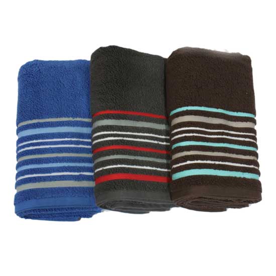 This towel features a captivating blue exterior, lightening up your mood effortlessly. The lovely towel is also designed with multi-color striped patterns for added style. Made of cotton, this towel promises soft texture and durable construction.