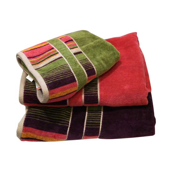 These stylish cotton towels feature a multi-color stripe design. These cotton towels are very absorbent and will remain soft after washing and drying. They are wonderful additions to your bathroom.