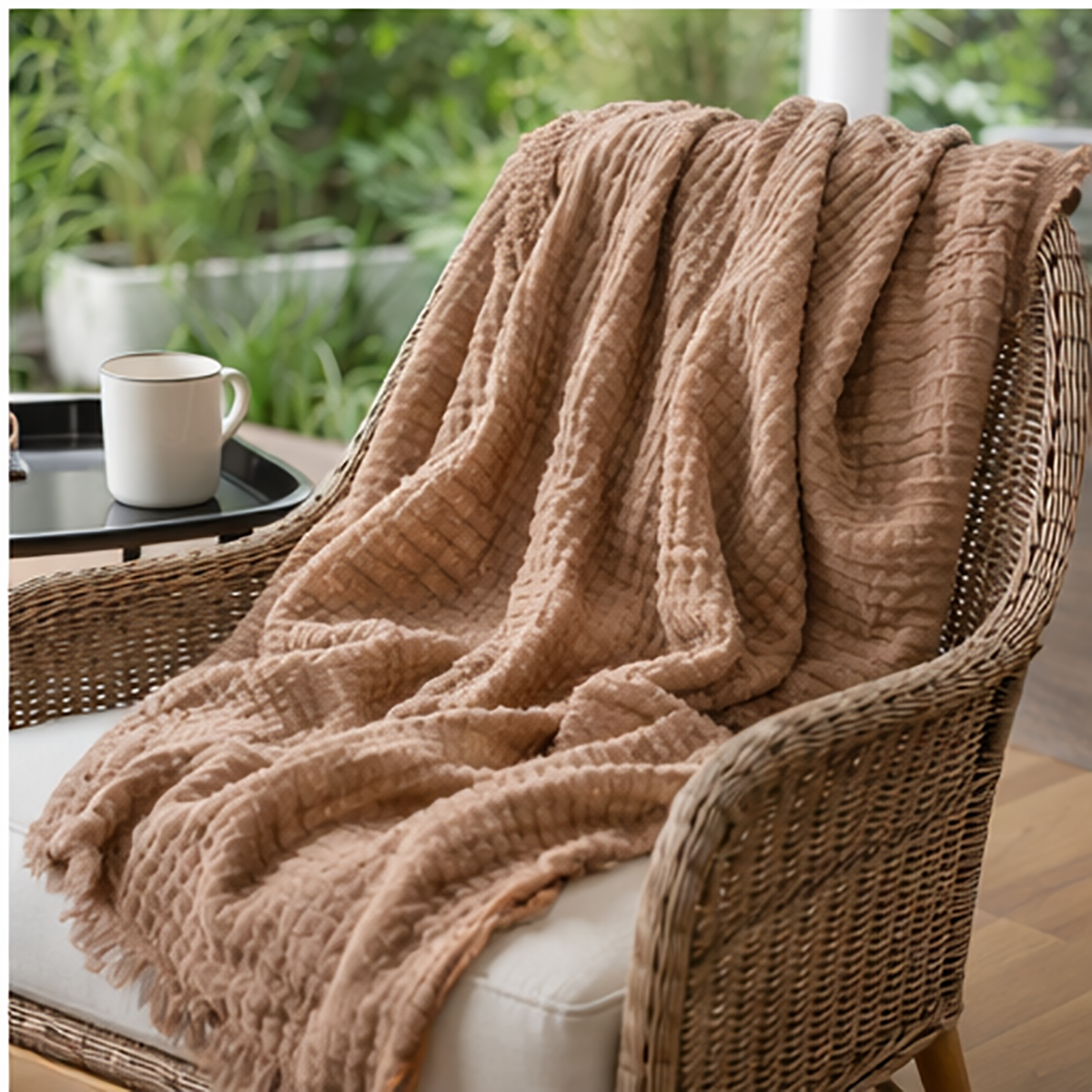 Elevate your home décor with our 100% cotton throw blanket, crafted from natural cotton fibers for a breathable, soft, and skin-friendly touch. This blanket delivers lightweight comfort, reliable warmth, and lasting durability, making it an ideal choice for both everyday use and stylish interior accents.