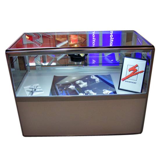 This jewellery display unit is best for any jewellery shop. Safety is one of the main concerns of this unit. The doors, sides and tops are made of toughened glass, protecting the jewellery to the greatest extent, while allowing customers to see the products. The unit is not too high, appropriate for the salesman and customer sitting on both sides of the table to examine the jewellery.
