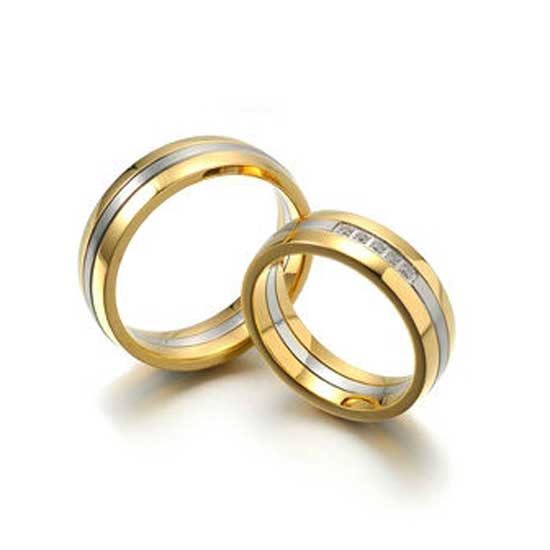 The showcased couple rings feature a 3-band design in gold and silver tones. The top is exquisitely crafted with glittering with CZ stones for extra glitz. This beautiful couple ring set makes an ideal gift for Valentine’s day.