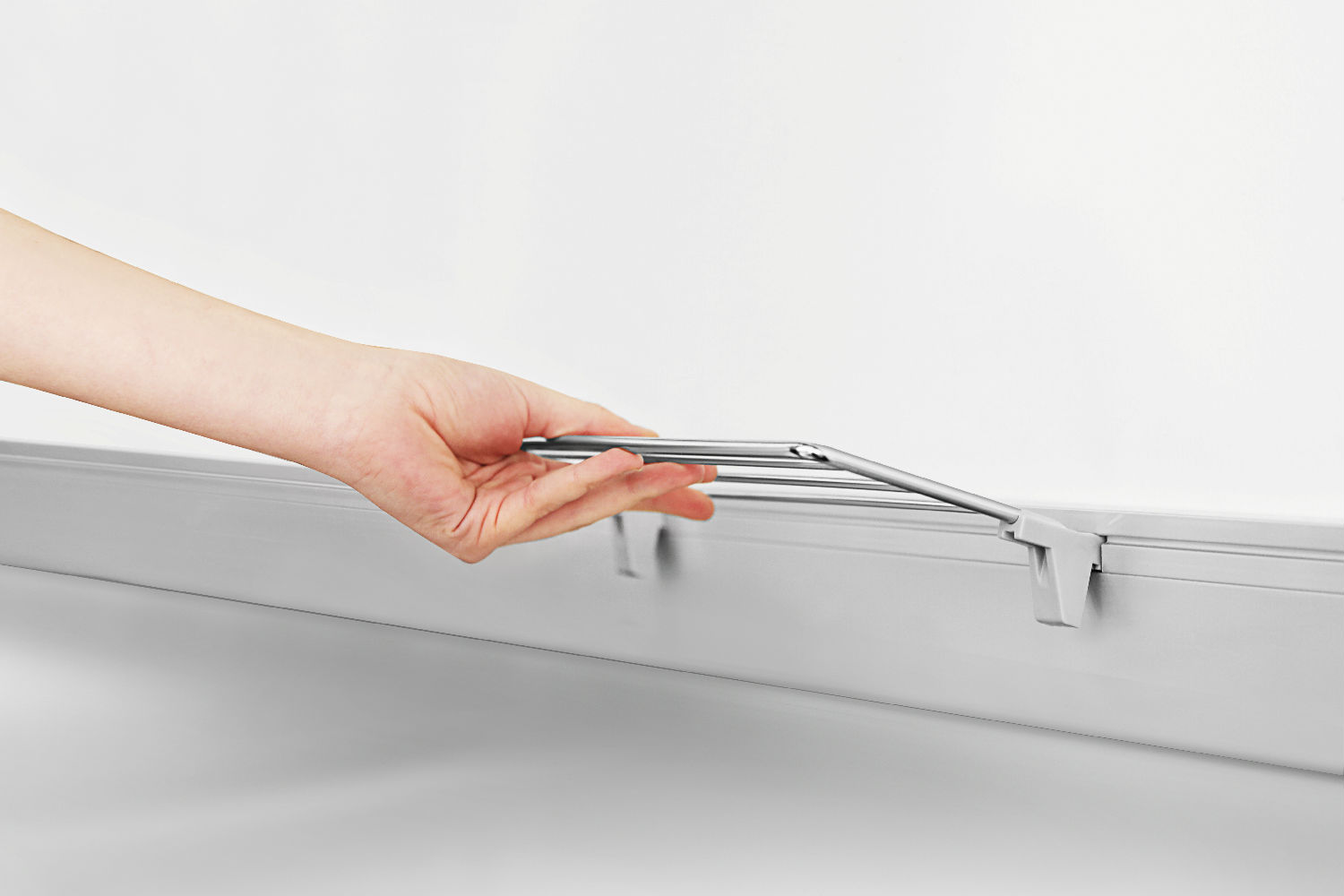 Realizing One-Second Assembly into Holding Rail by tilting hanging unit at an angle of 35 degree or above. Realizing One-Second Disassembly from the holding rail, firstly lift up the hanging unit vertically and then tilting it by 35degree or above