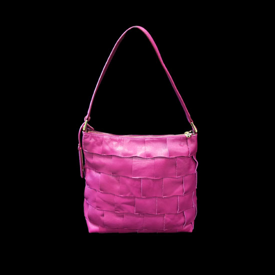 This pink ladies' shoulder bag comes with a fashionable appearance. The finely manufactured bag is comfortable to wear. It is sturdily constructed for a long service life.
