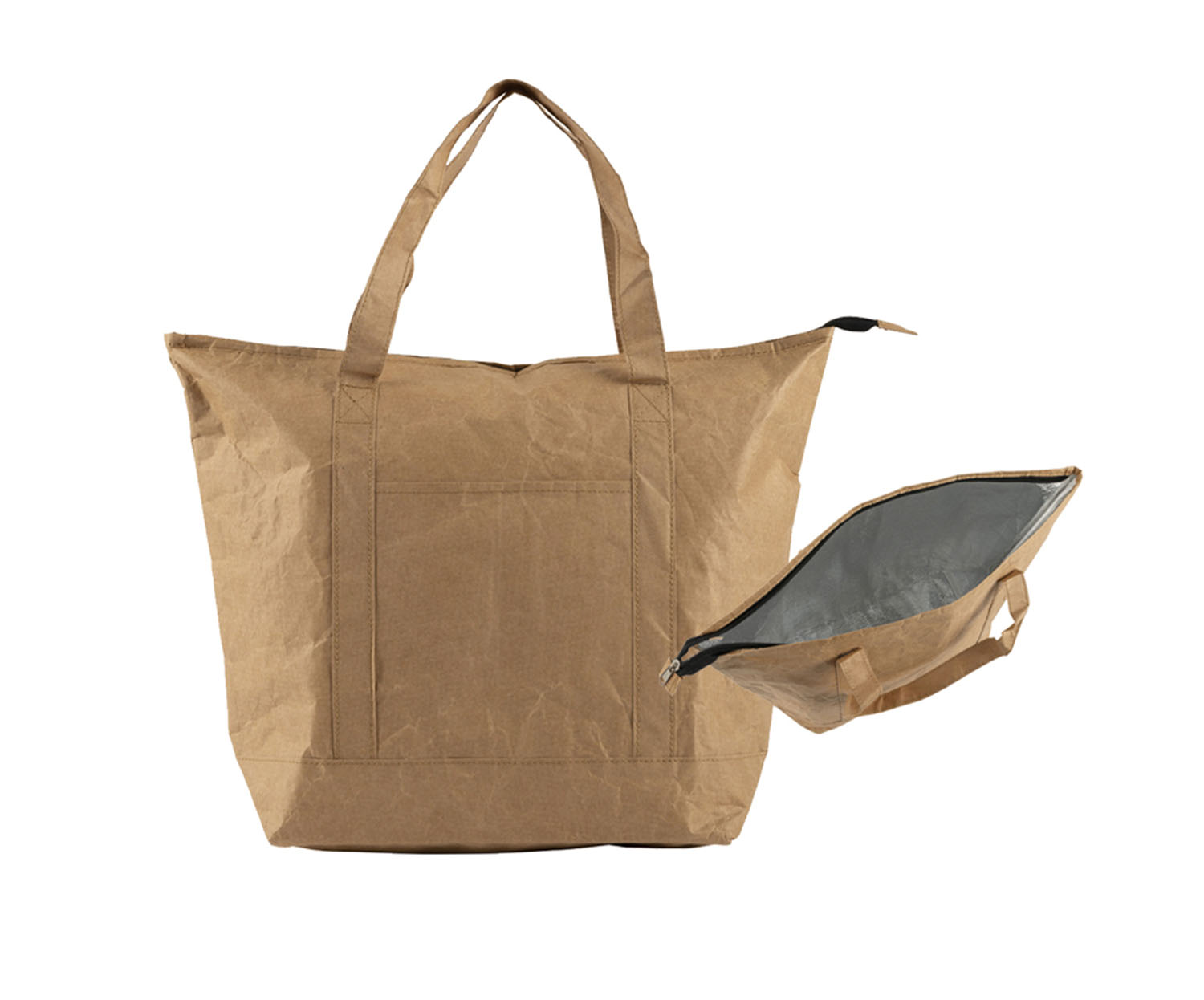 This cooler bag is made of Craft paper, natural color and natural material make the item be recycled.