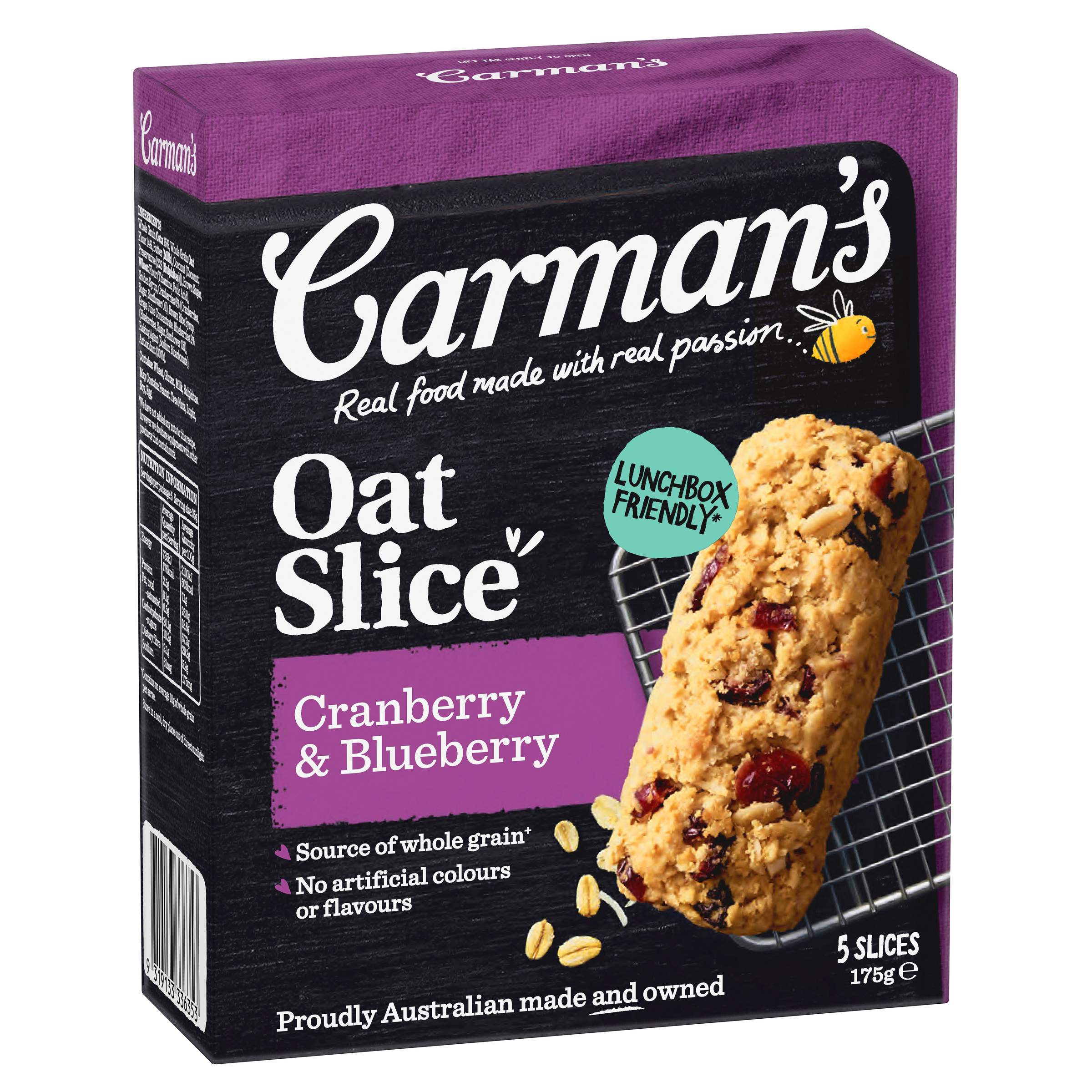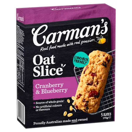 Oven baked with Australian whole grain oats, juicy cranberries and blueberries without nuts.