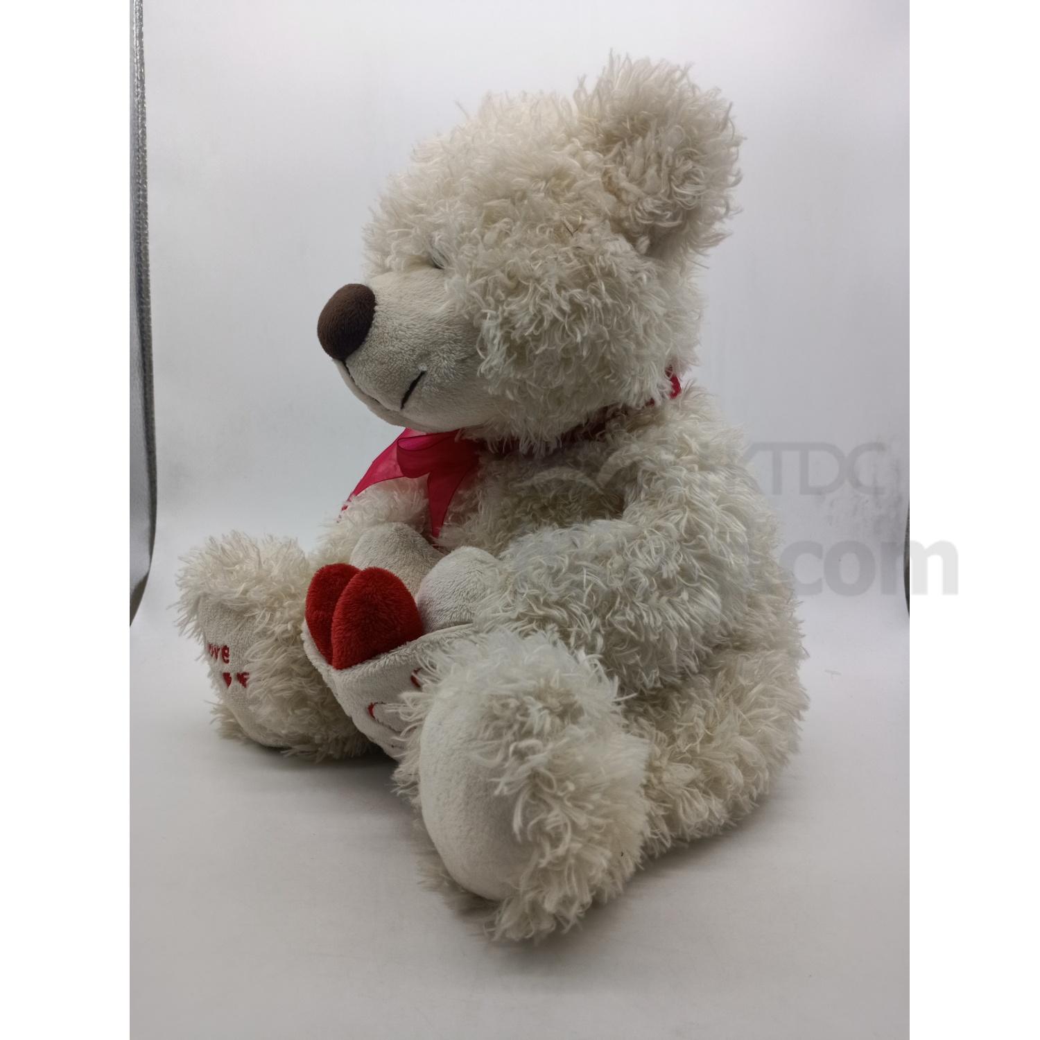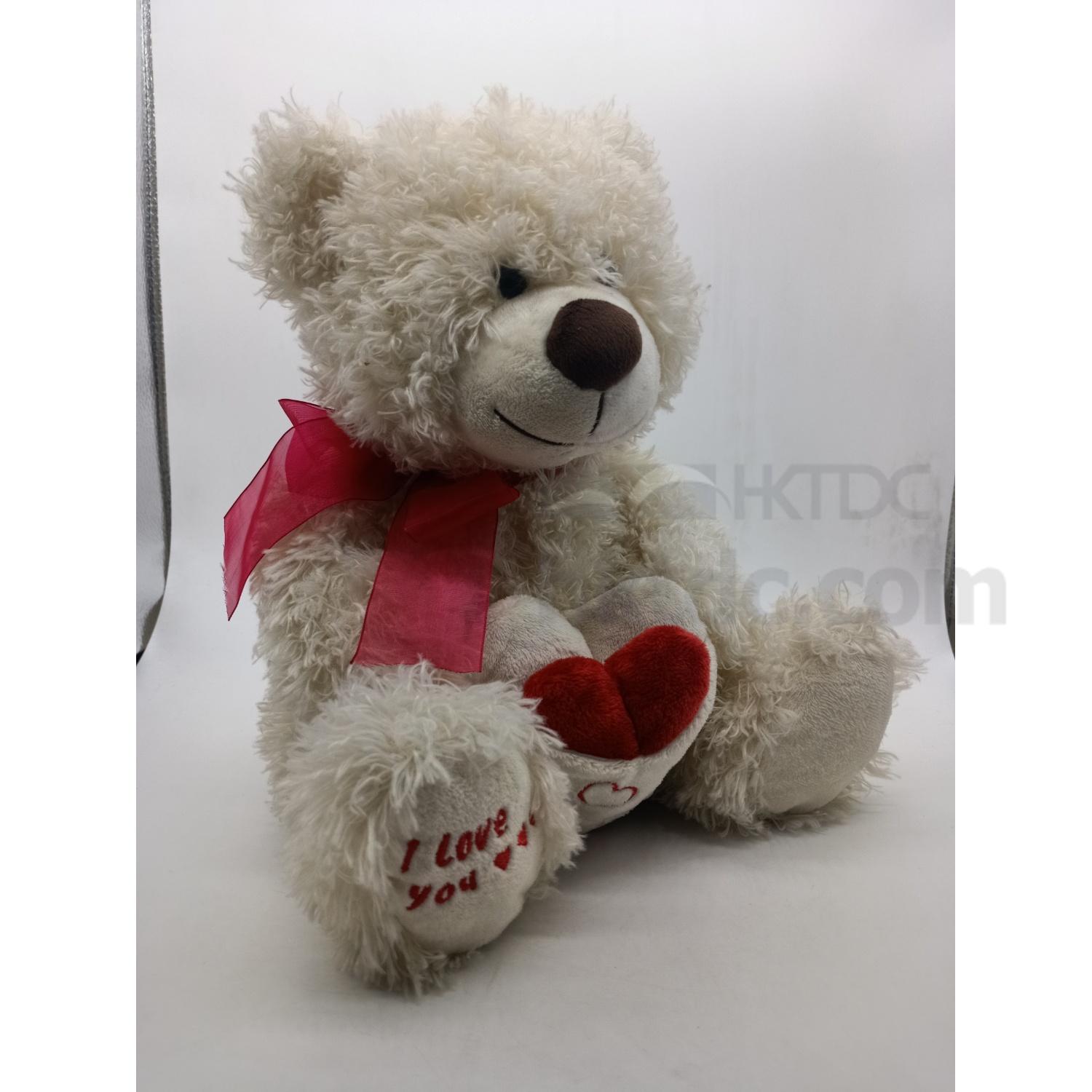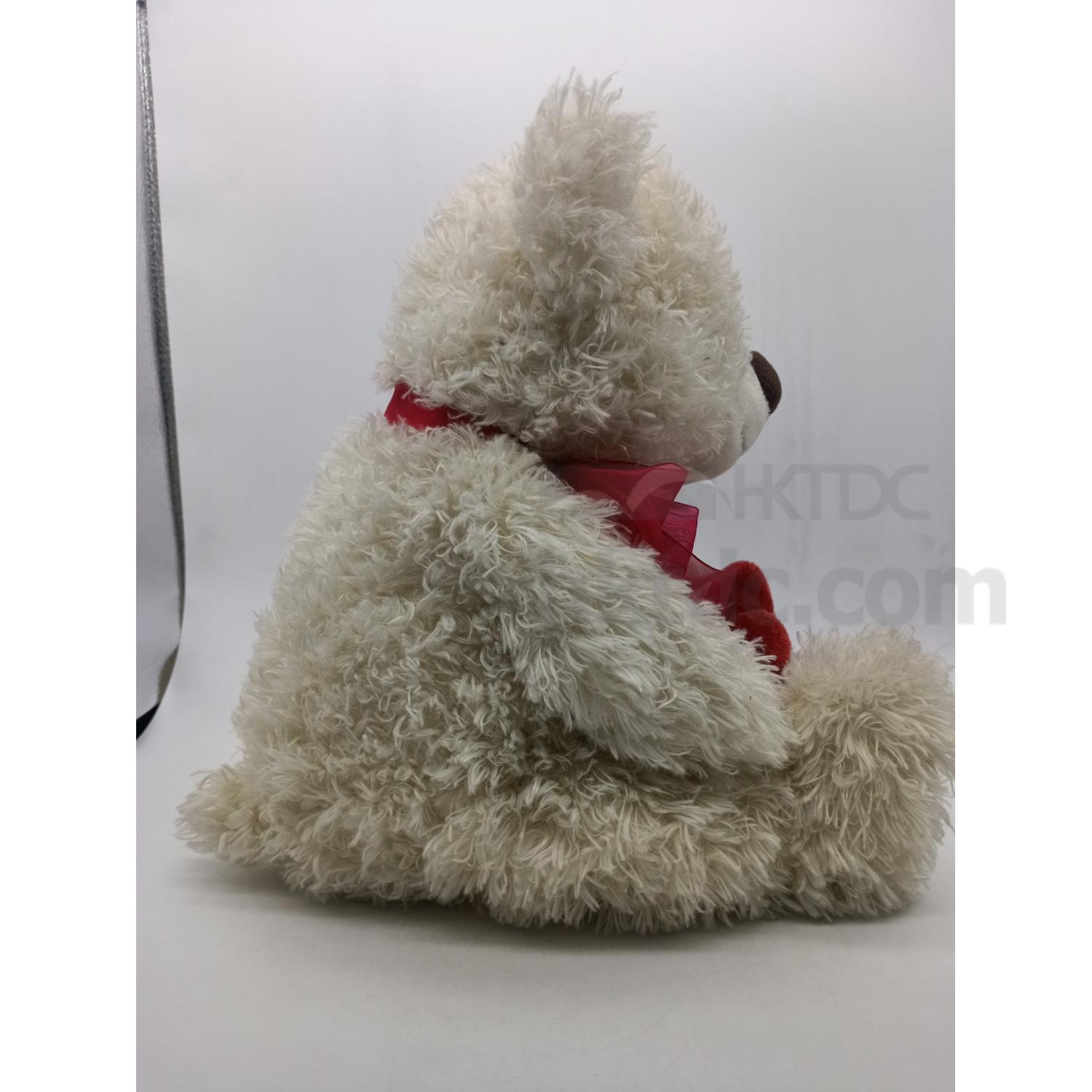 Cream Bear Hug Red Heart Plush Toy