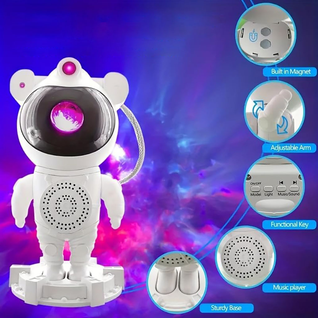 Creative Astronaut-Shaped Starry Night Light with Bluetooth Speaker includes the following features :