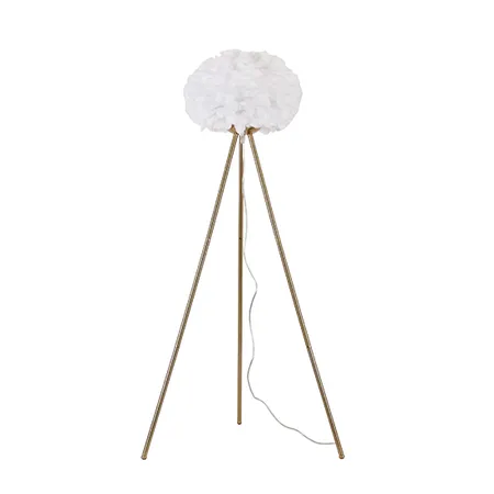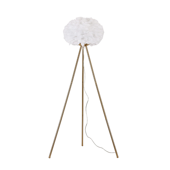 Creative Feather Floor Lamp with shiny gold finish frame and natural feather shades. Matching feather chandelier and table lamp to decorate your house, it will make your house much warmer.