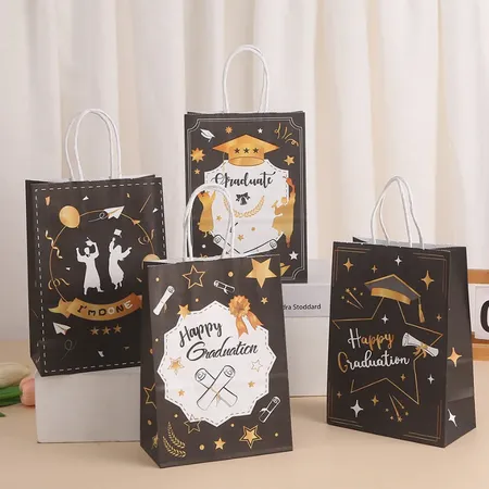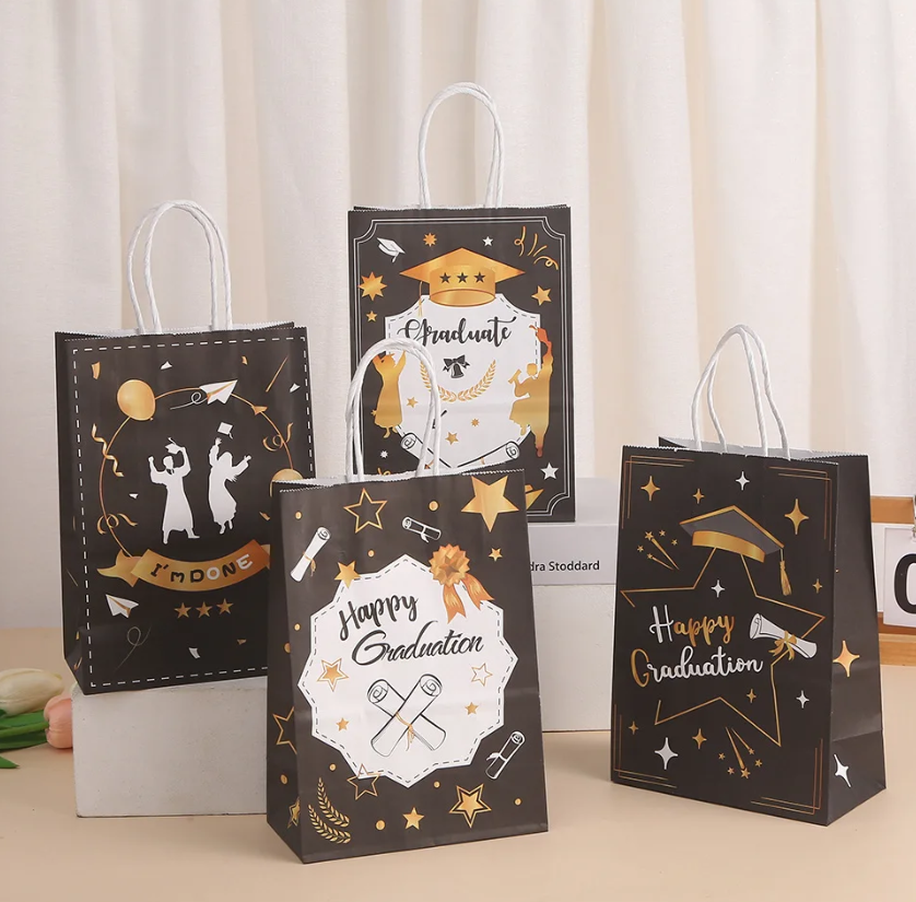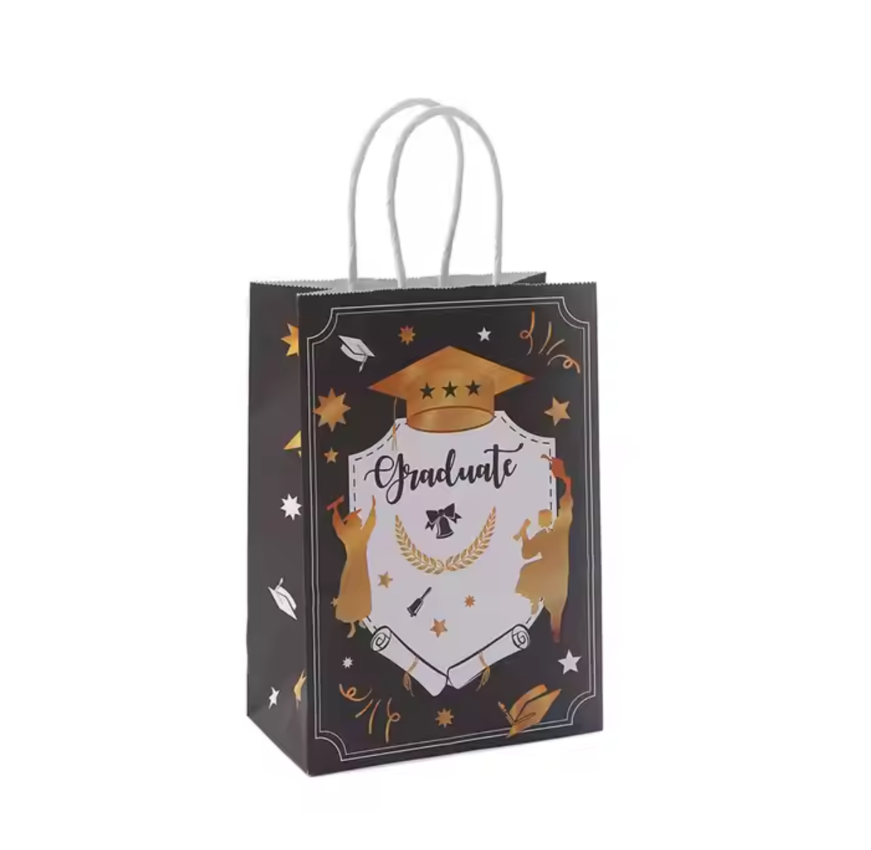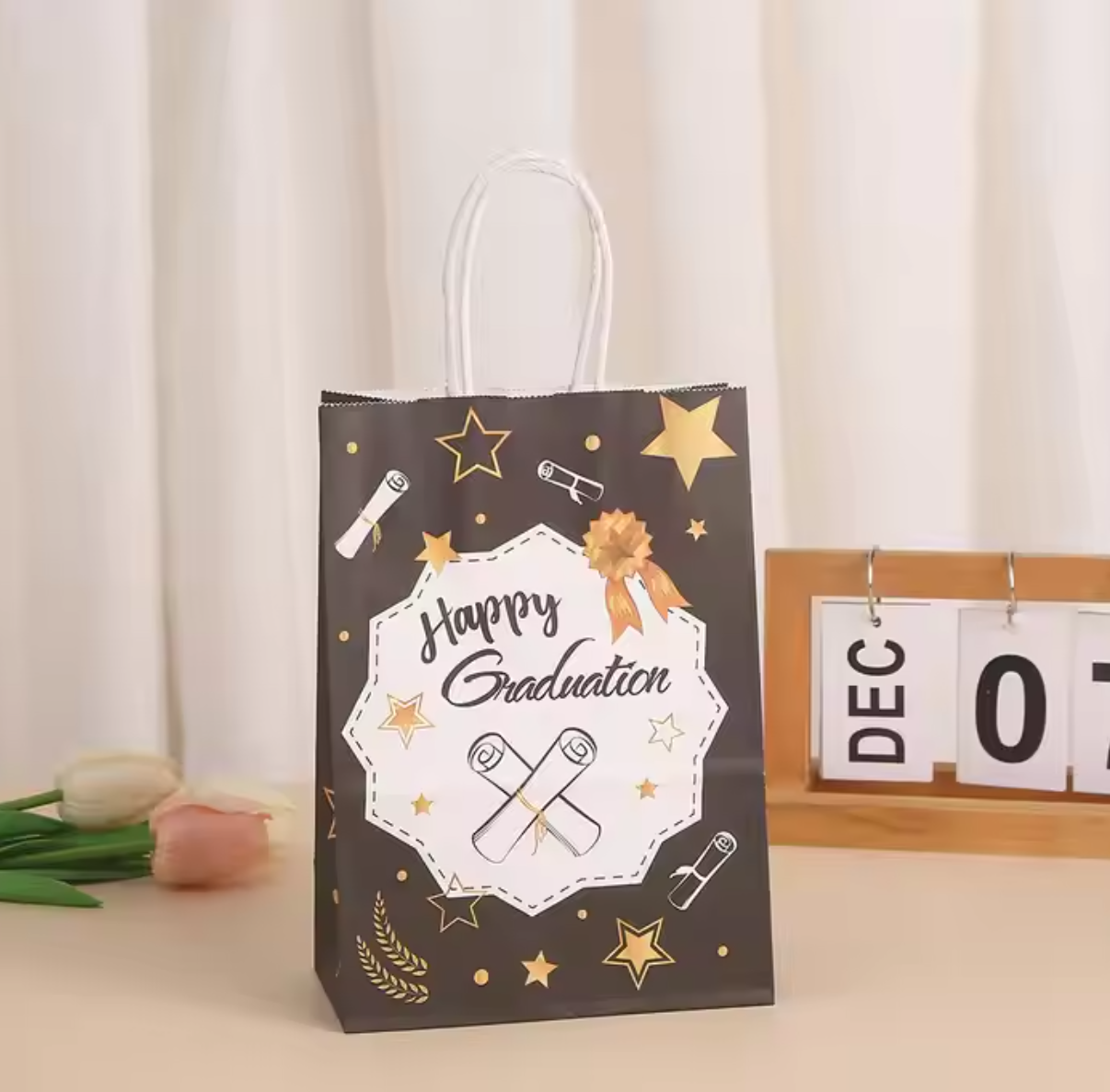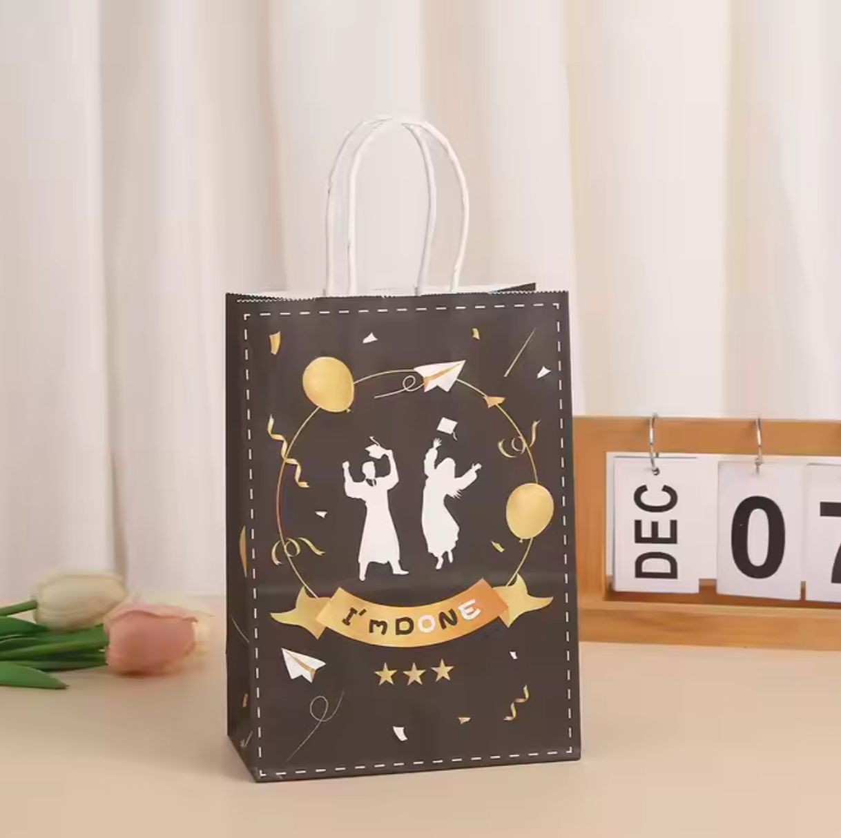 Creative Kraft Paper Tote Bag Gravure Printed Happy Message Cardboard Material Ribbon Accessory for Food Packaging Gifts