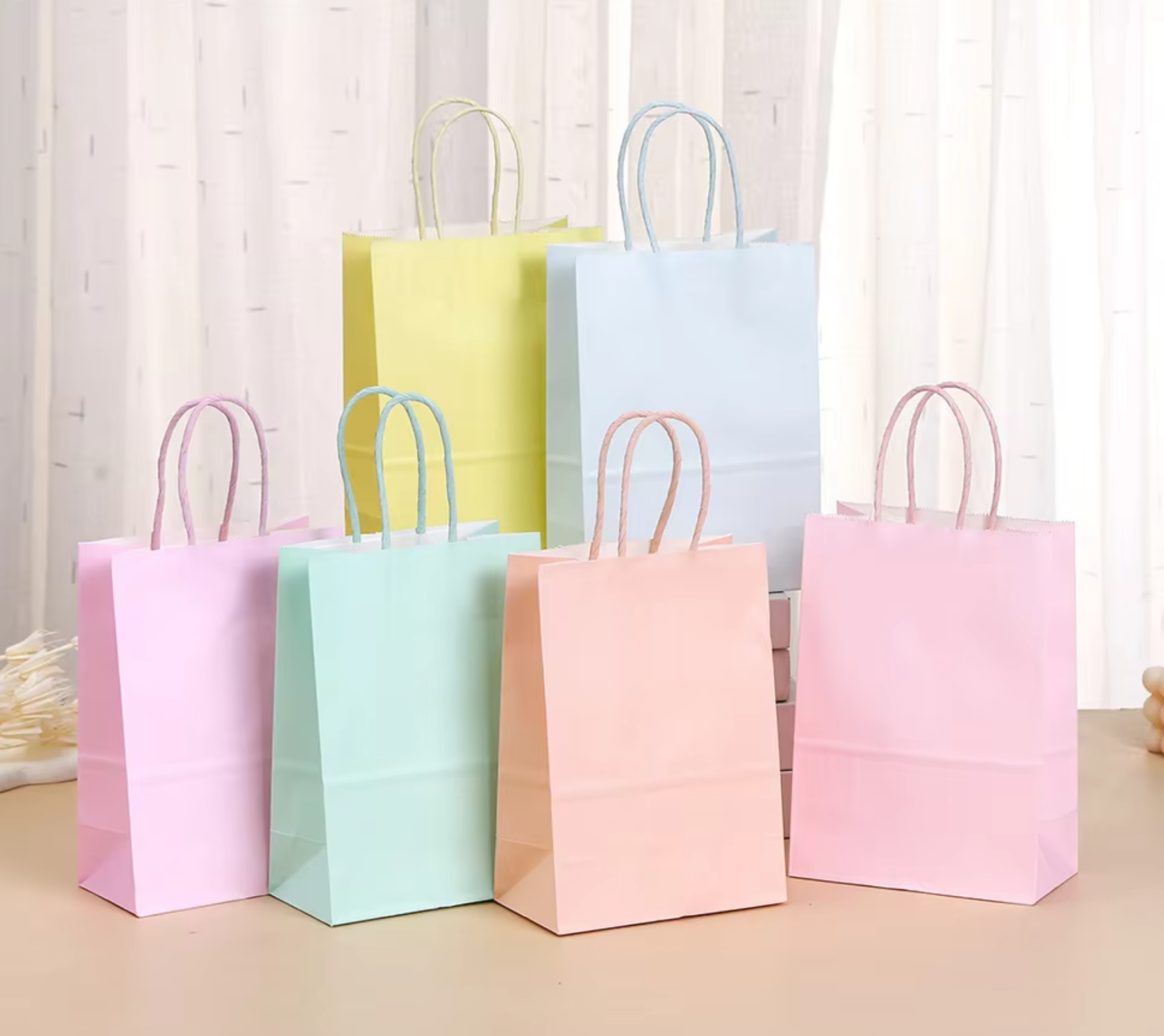 Creative Macaron Color Kraft Paper Tote Bag Simple Cowhide Design for Holiday Gifts for Supermarket Flat Candy Promotions